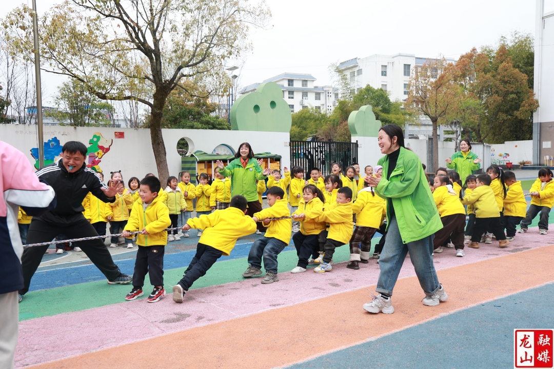 上午8时,孩子们踏着轻快的步伐走出幼儿园大门。队伍沿体育馆等标志性地点前行,教师沿途引导幼儿观察周围环境、辨识交通信号灯的变化,在真实的生活场景中渗透安全教育与自然教育。随后,队伍顺利抵达皇仓幼儿园。两园幼儿在欢声笑语中迅速破冰。一场趣味拔河比赛点燃现场热情,孩子们紧握麻绳、齐声呐喊,友谊在团队协作中悄然生长。之后,进行了跨园探访环节,第一幼儿园的孩子们参观并体验皇仓幼儿园的户外活动区、大型游戏区、生态种植区等,两园教师则围绕环创设计、户外游戏课程等展开现场交流,碰撞教育灵感。