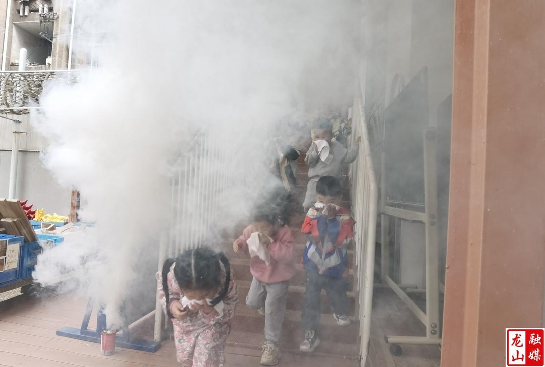 随着一阵急促的警报声响起,消防演练正式拉开帷幕。各班教师迅速组织幼儿用湿毛巾捂住口鼻,弯腰低姿,按照预定的疏散路线,快速有序地撤离到安全地带。在疏散过程中,教师们时刻关注着幼儿的安全,确保每一位幼儿都能顺利撤离。整个演练过程紧张有序,仅用了1分51秒,全体师生就安全抵达了集合点。