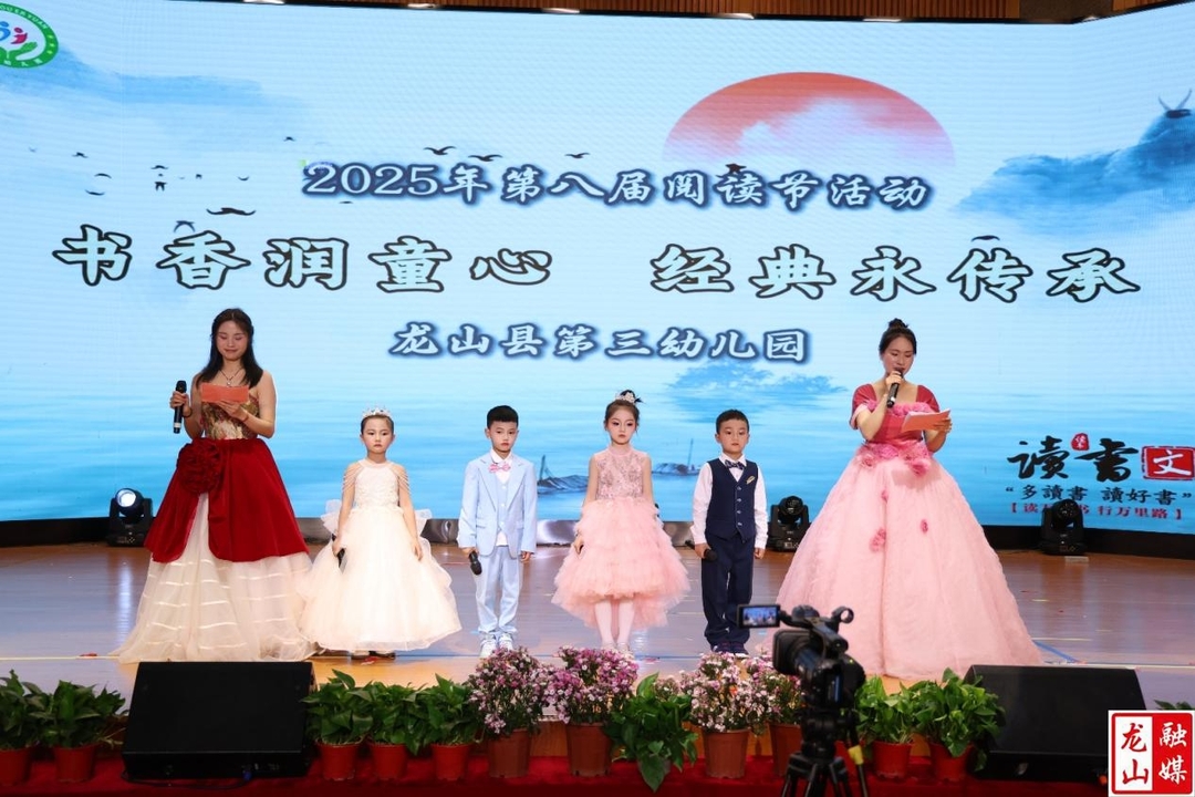 龙山县融媒体中心4月25日讯(通讯员  段秋蓉)近日,第三幼儿园在九天瑞峰国际酒店展演厅成功举办了一场精彩纷呈的阅读节绘本表演活动。本次活动以“书香润童心,经典永传承”为主题,吸引了全校师生的热情参与。