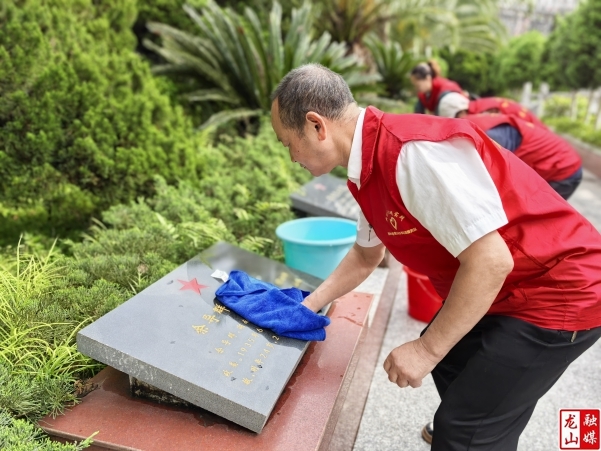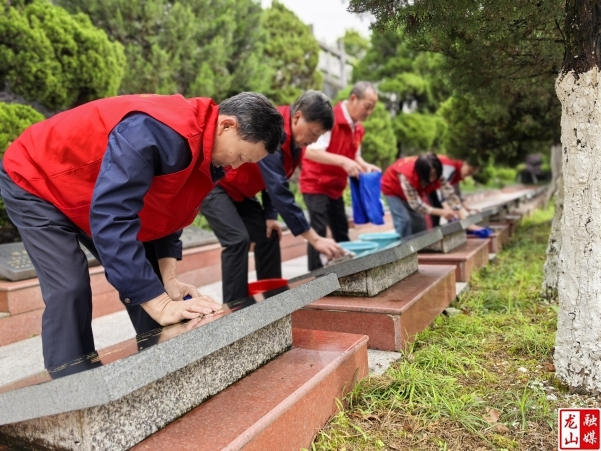 龙山县融媒体中心5月6日讯(通讯员 杨士楚 夏琳)近日,县民政局机关退休老党员、老干部志愿者举着队旗,带着水桶抹布,来到了县烈士陵园。