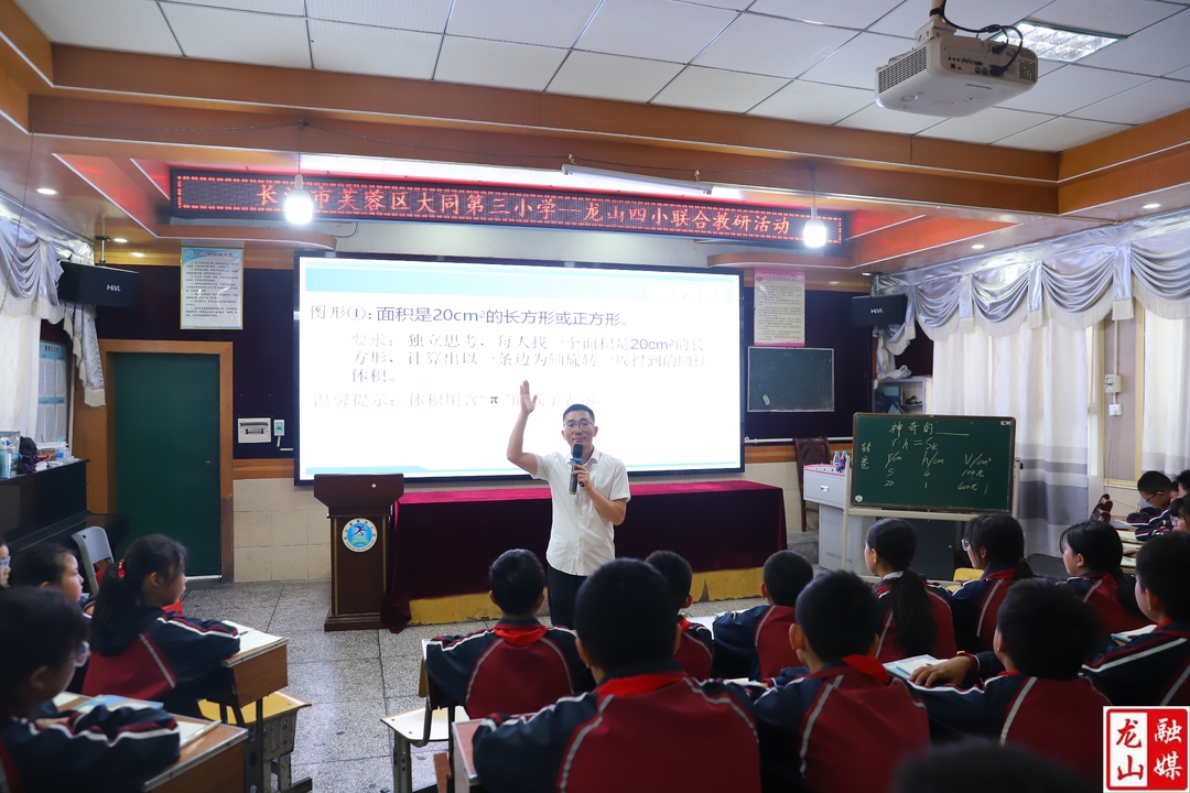 活动中,长沙市芙蓉区大同第三小学李品老师带来了《神奇的圆柱》示范课。在课堂上,李老师以先进的教学理念和充满活力的教学风格,充分调动了学生的学习积极性。他巧妙地通过列表、图像、视频等形式引导学生深入理解圆柱半径与体积之间的关系,让学生在轻松愉悦的氛围中掌握知识要点。