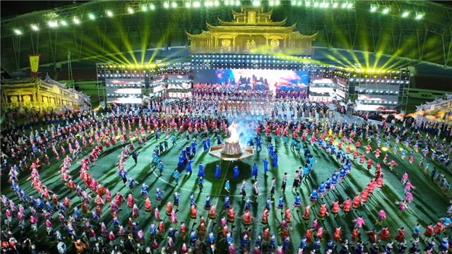 夜幕降临,在惹巴拉宫举行的“神秘湘西·风韵武陵”武陵山区(湘西)国家级文化生态保护区建设成果展示主题晚会开幕。晚会分为《迎宾》《神秘武陵》《风韵武陵》《和谐武陵》《快乐武陵》五个篇章,展现武陵山区(湘西)独特的自然风光、民族风情和生态保护成果,突出“神秘、多彩、生态、和谐”的特点,打造一场沉浸式民族文化视听盛宴,展示湘西土苗文化魅力,促进文旅融合。