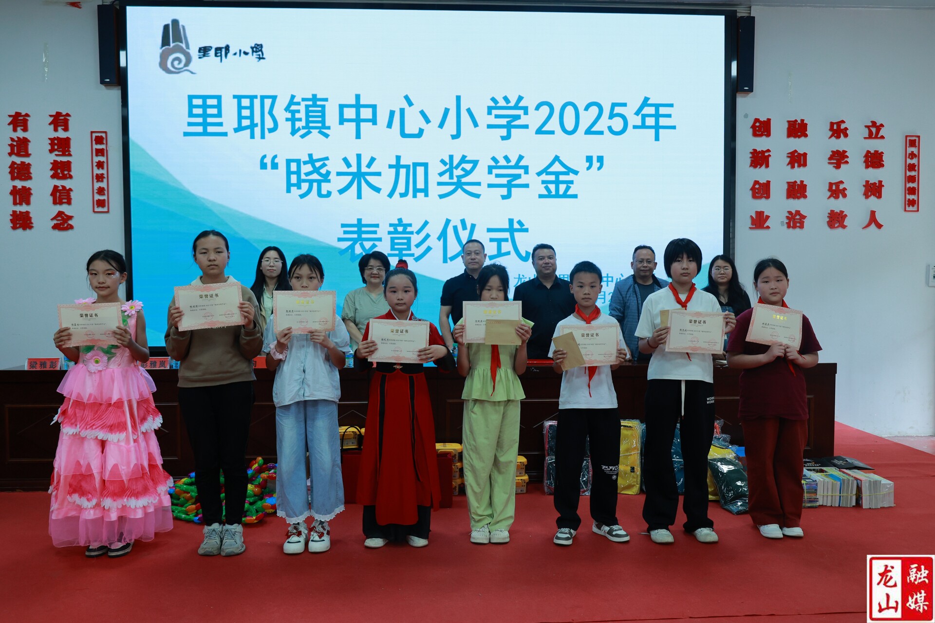 龙山县融媒体中心5月30日讯(通讯员 骆琼慧 贾阳军 王秋洪)5月28日,里耶镇中心小学举行"晓米加奖学金"表彰活动,54名学子获得共计1万多元的奖励与资助。该奖学金由湖南工商大学梁晓博士发起,以其与两位女儿"米米""加加"的名字命名,为了传递教育温情,助力乡村儿童勇敢追梦。