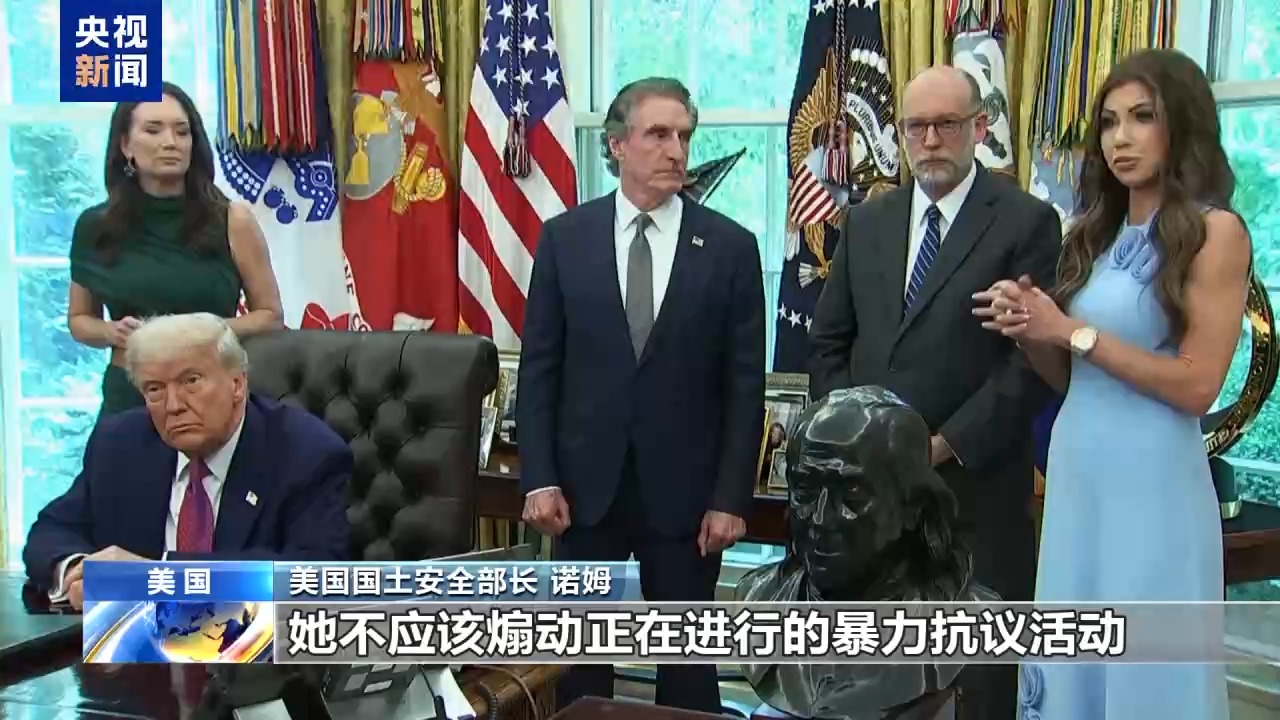 美国国土安全部长诺姆:辛鲍姆站了出来,鼓动在洛杉矶进行更多的抗议活动。我谴责她的行为,她不应该煽动正在进行的暴力抗议活动。