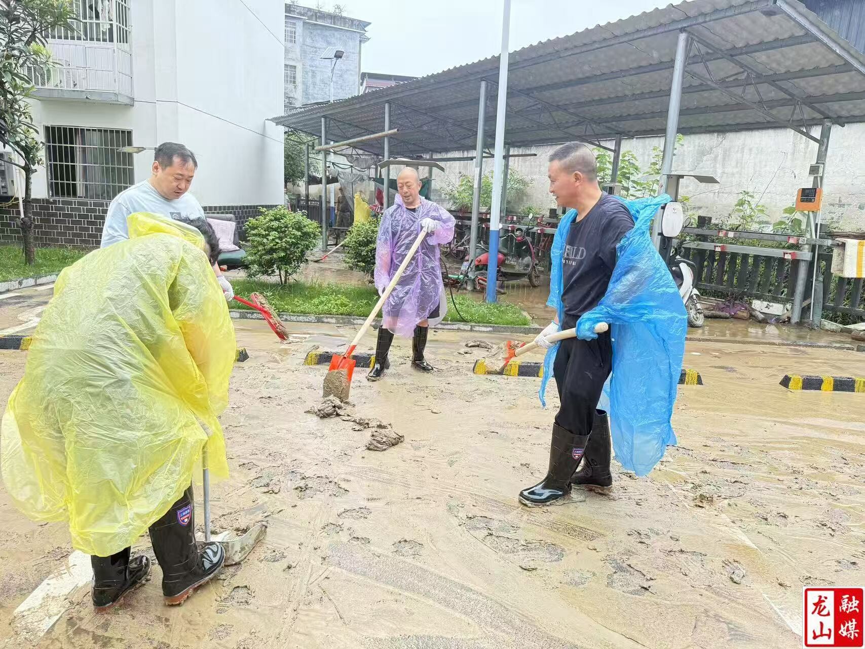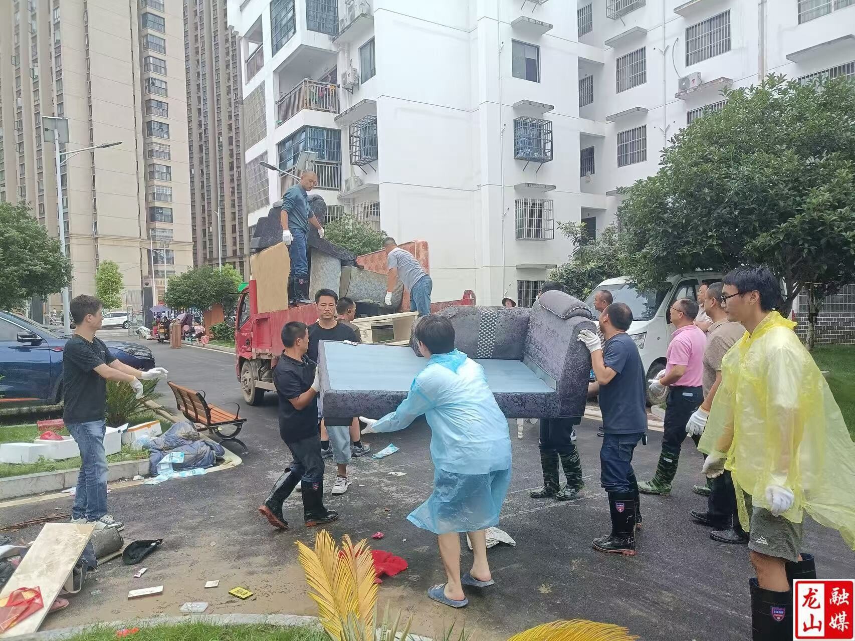 龙山县融媒体中心6月23日讯(通讯员 陈亚秋)洪水渐渐退去,龙山县城沿着果利河两岸小区的坪坝街巷留下一片土黄色的淤泥,满目疮痍,遍地漂浮物、遗弃物。6月21日上午,微雨如星芒。在民安街道办事处土城坝社区临河安置小区,一群环保志愿者身穿雨衣,脚蹬雨鞋,挥舞平铲、笤帚,将板结的淤泥打堆清运,一遍又一遍配合洒水车清扫停车场、巷道,让黄化的炒砂路恢复了黑色真面目。小区一楼进水的住户有不少家具已泡坏,志愿者们就帮着扛运到垃圾车上。虽然大家满身泥污,满头汗水,但没有人后退,也没有人抱怨。湘西州生态环境局龙山分局的党员干部职们积极帮助当地群众开展抗灾自救行动,重建家园。