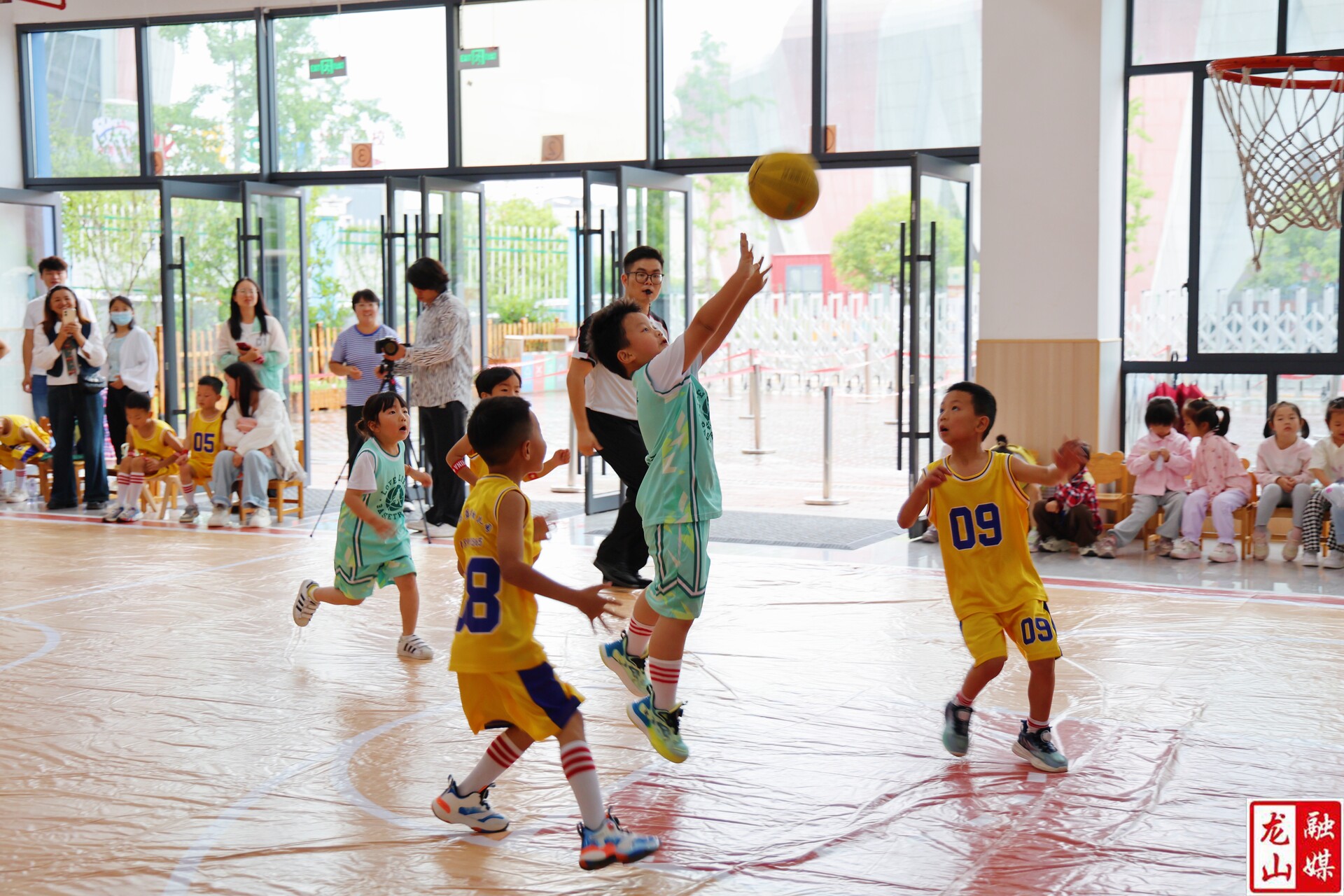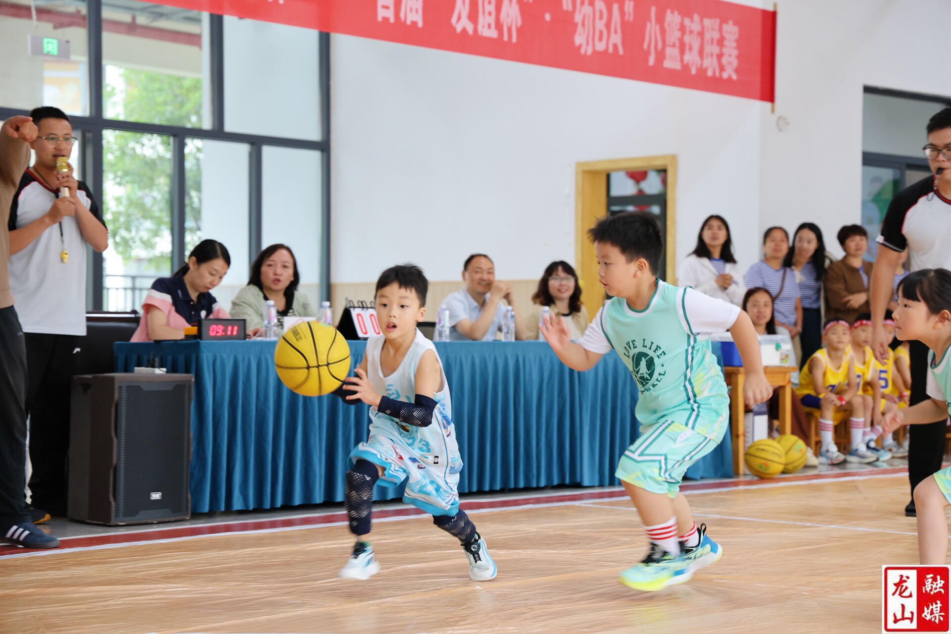 赛场上,小球员们成为绝对主角。他们精神饱满、全情投入,尽管动作尚显稚嫩,但孩子们展现了良好的运动热情和专注度,奋力拍球、奔跑、尝试运球突破和投篮。每一次成功的配合与进球,都赢得了现场观众由衷的掌声与鼓励。场边啦啦队员们热情高涨,加油声、呐喊声此起彼伏,营造出积极向上、团结友爱的赛场氛围。