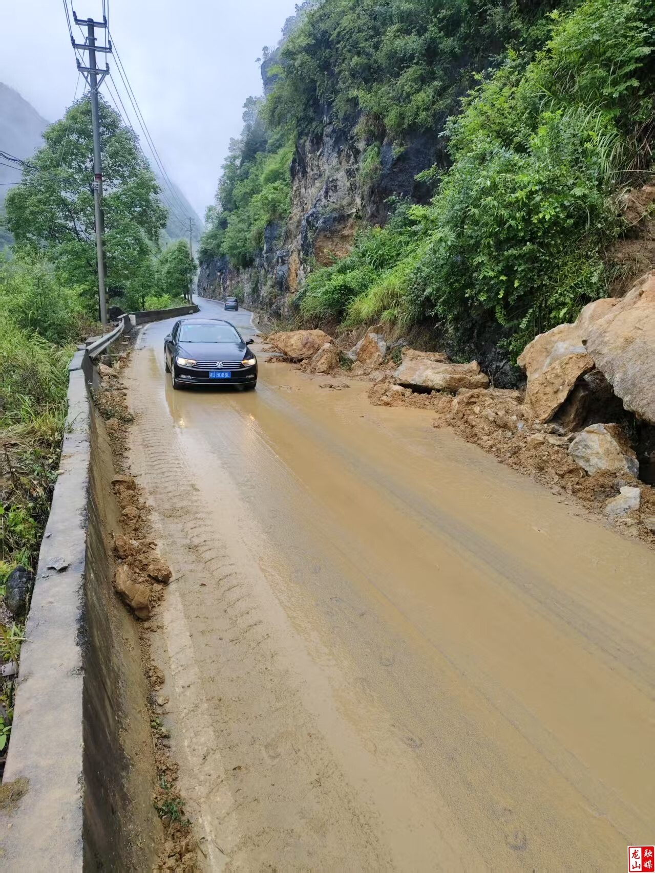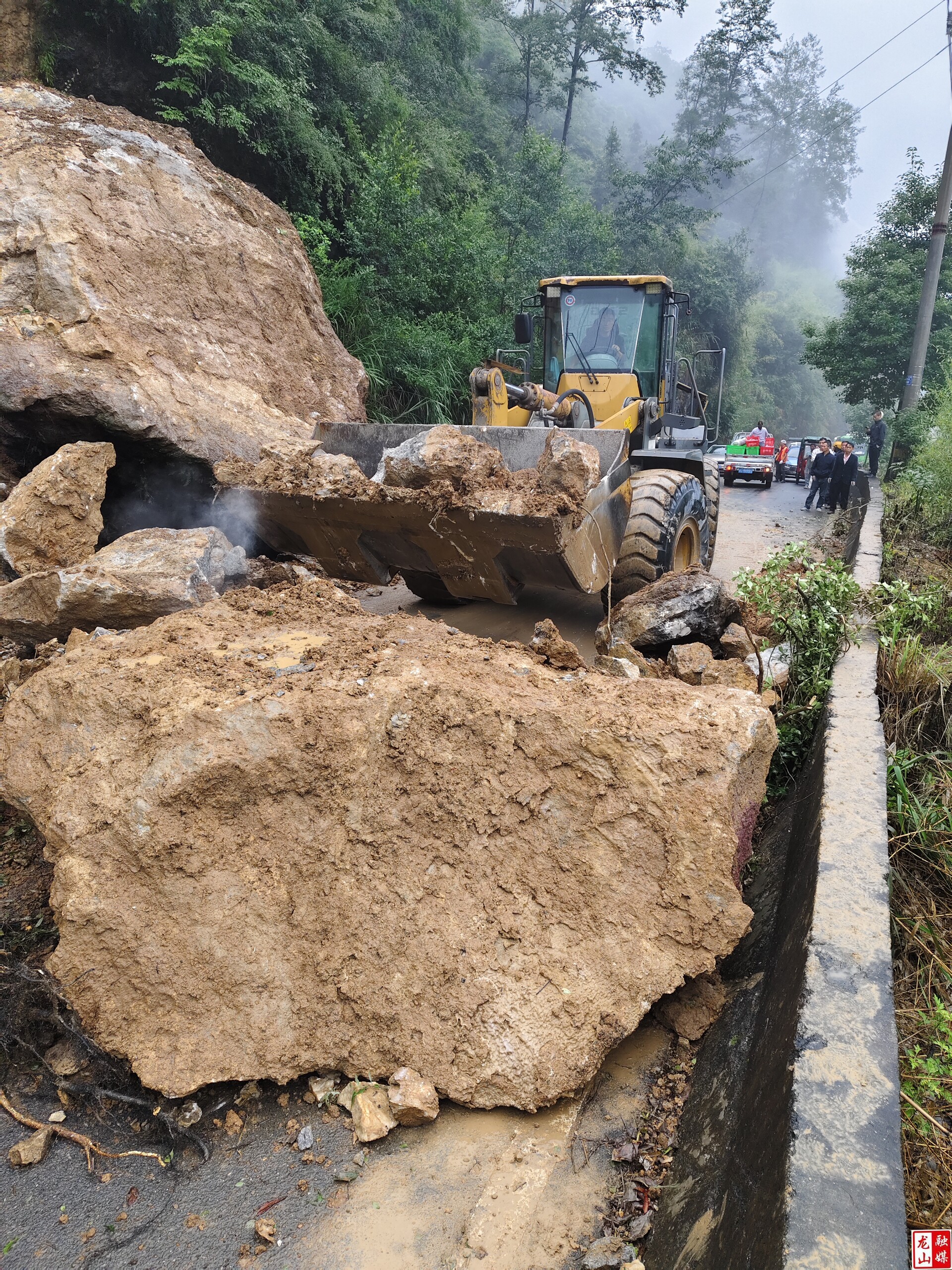 早上6时30分,龙山县火岩至召市镇的s309省道发生山体滑坡塌方,近30米长、15米高的边坡垮塌,约1000立方米大石头、泥土裹挟倾倒树木阻断交通。县公路部门迅速响应,组织人员利用推土机开展作业。在现场,工作人员拉起警戒线,树立起施工警示牌,推土机来来去去,一铲铲将路上的大石头和泥土推向一边,抢险工作尽然有序,经过3个多小时紧急抢修,该路段恢复通行。