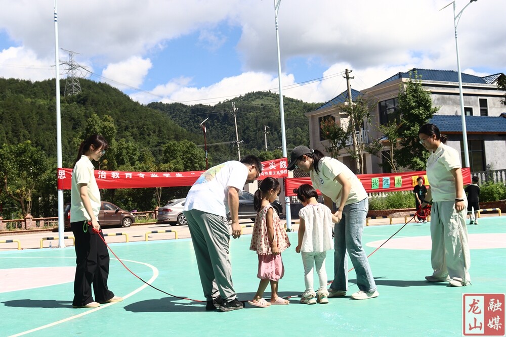 时值暑假,实践团同学们还向在家学生科普无人机知识,他们从类型、功能和发展历程等理论知识到演示无人机飞行的实践操作,在凉水村播下数智振兴的火种。在村民服务中心,大学生小学生们共同开展体育课,结合体育理论组织了实践课程,大家有序而不失活力地进行了跳绳、乒乓球、羽毛球、篮球等体育活动。