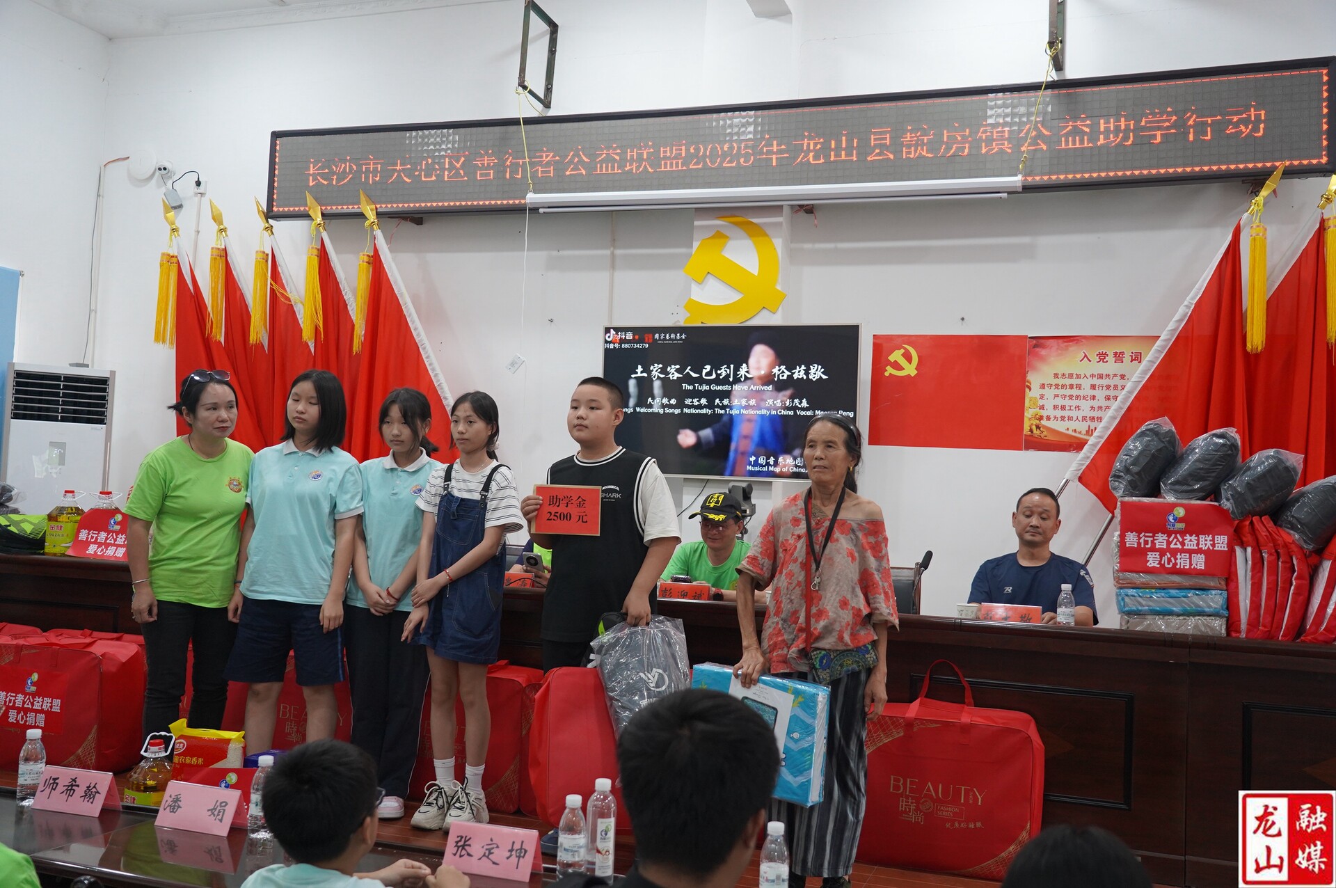 龙山县融媒体中心7月14日讯(通讯员  吴彩炼)7月12日,盛夏七月,热情似火,靛房镇大爱如潮。一场跨越千里的爱心之约在此上演,在芙蓉区驻靛房镇对口帮扶工作队的牵线下,长沙市天心区善行者公益联盟的爱心人士们带着对靛房镇孩子的深切牵挂,开展了一场意义非凡的公益助学捐赠活动,用实际行动传递着人间温暖。