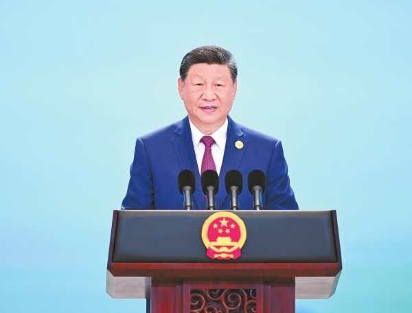 习近平发表致辞,代表中国政府和中国人民对来华出席上海合作组织峰会的国际贵宾表示热烈欢迎。