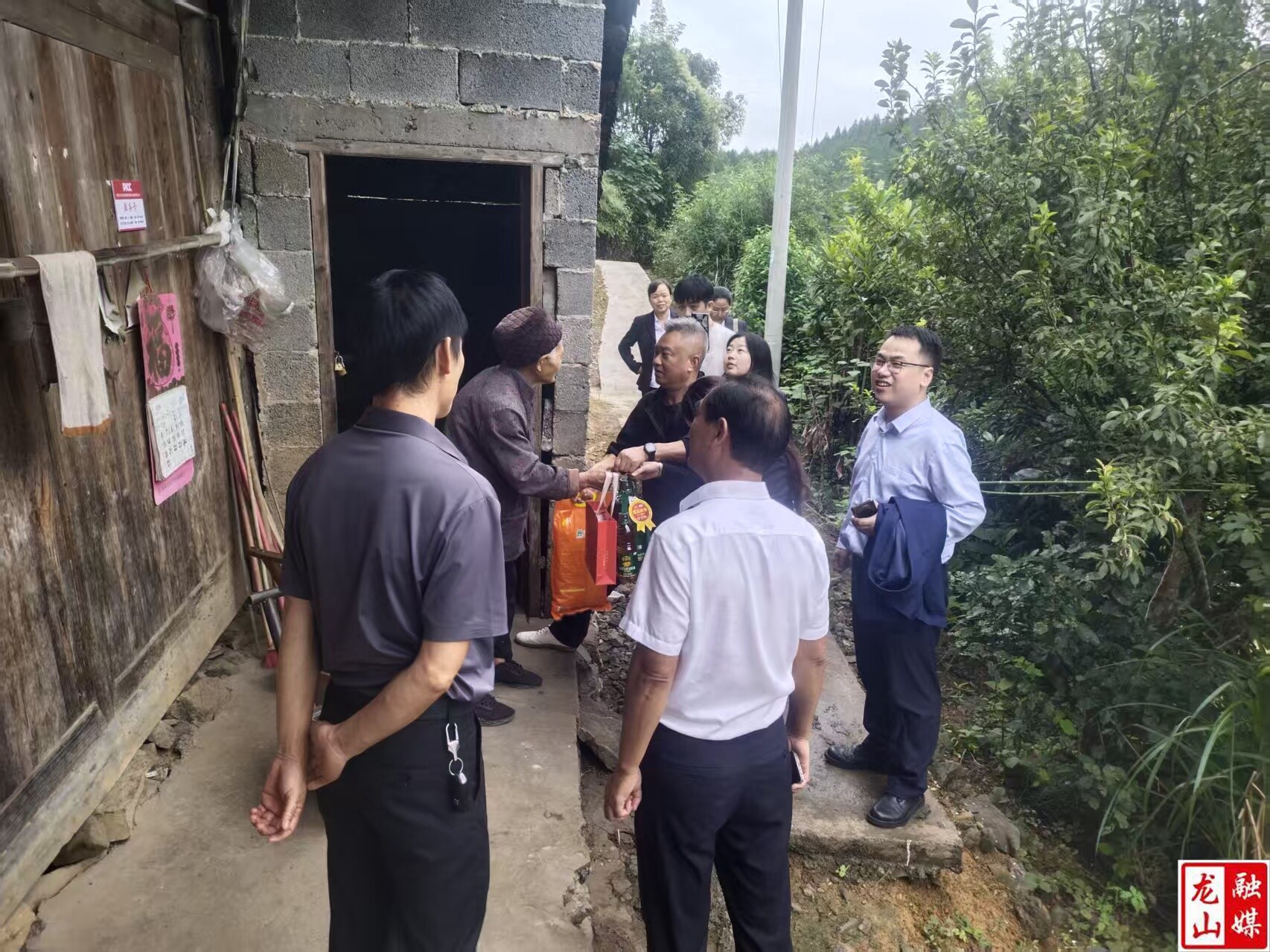 会后,大家共同对村内监测户、脱贫户进行走访,为村民们送去月饼、米、油等生活物资。