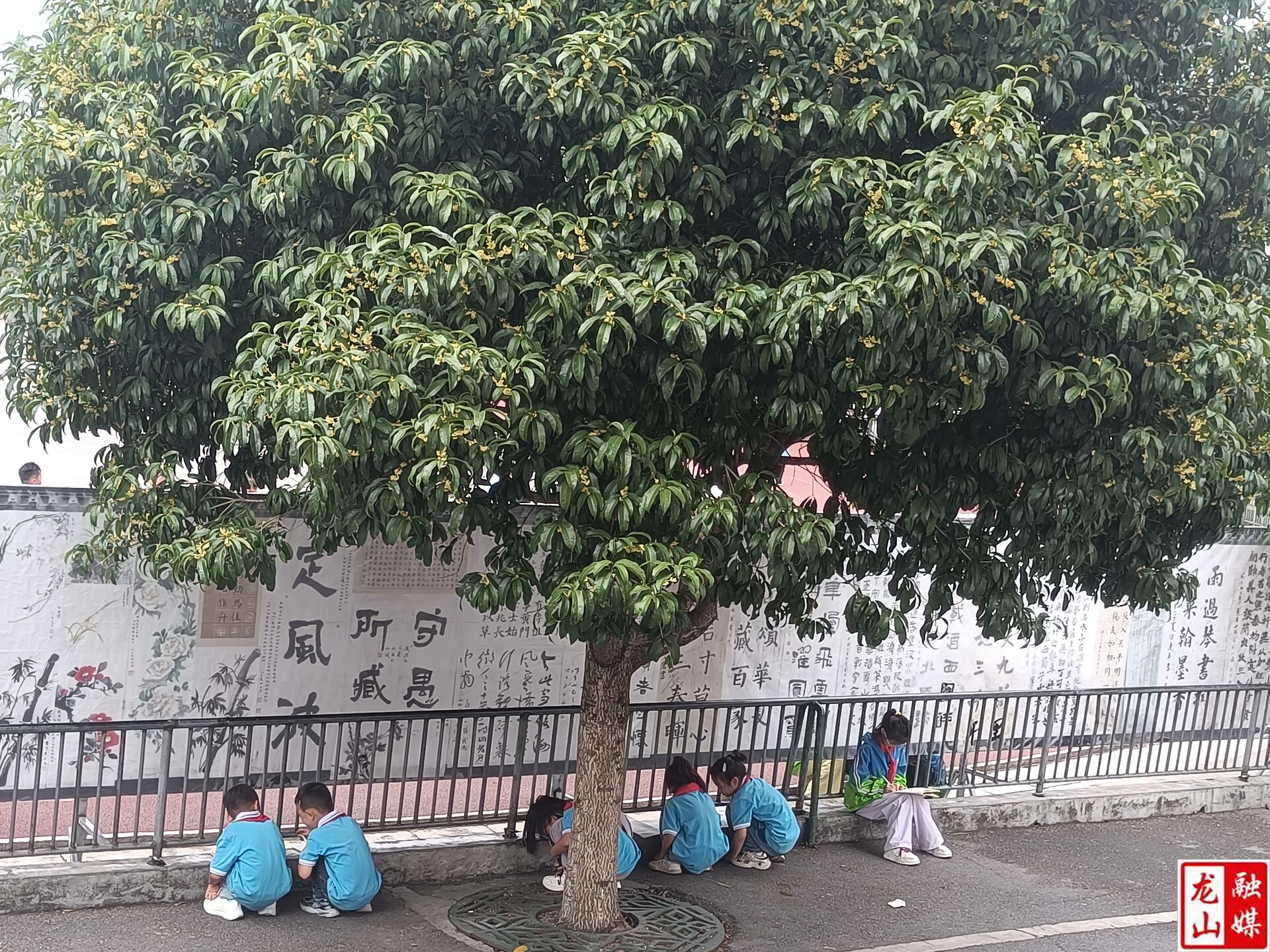 龙山县融媒体中心930日讯(通讯员  向利梅  彭楠岚  田景攀)9月29日县六小校园花香四溢,学校开展的自然探索教学活动在樟树桂花树等大树下进行,学生在老师带领下,观察描绘着自然的密码。