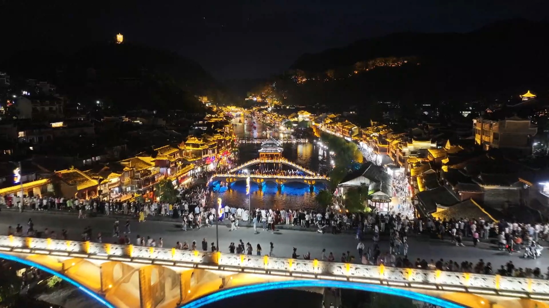 吉首矮寨大桥上,惊险的高空项目与浓郁的民族风情表演相映成趣;吉首德夯苗寨里,百人鼓舞气势恢宏,《德夯幻境》实景演艺令人沉醉;花垣边城茶峒的水上演出再现文学经典……