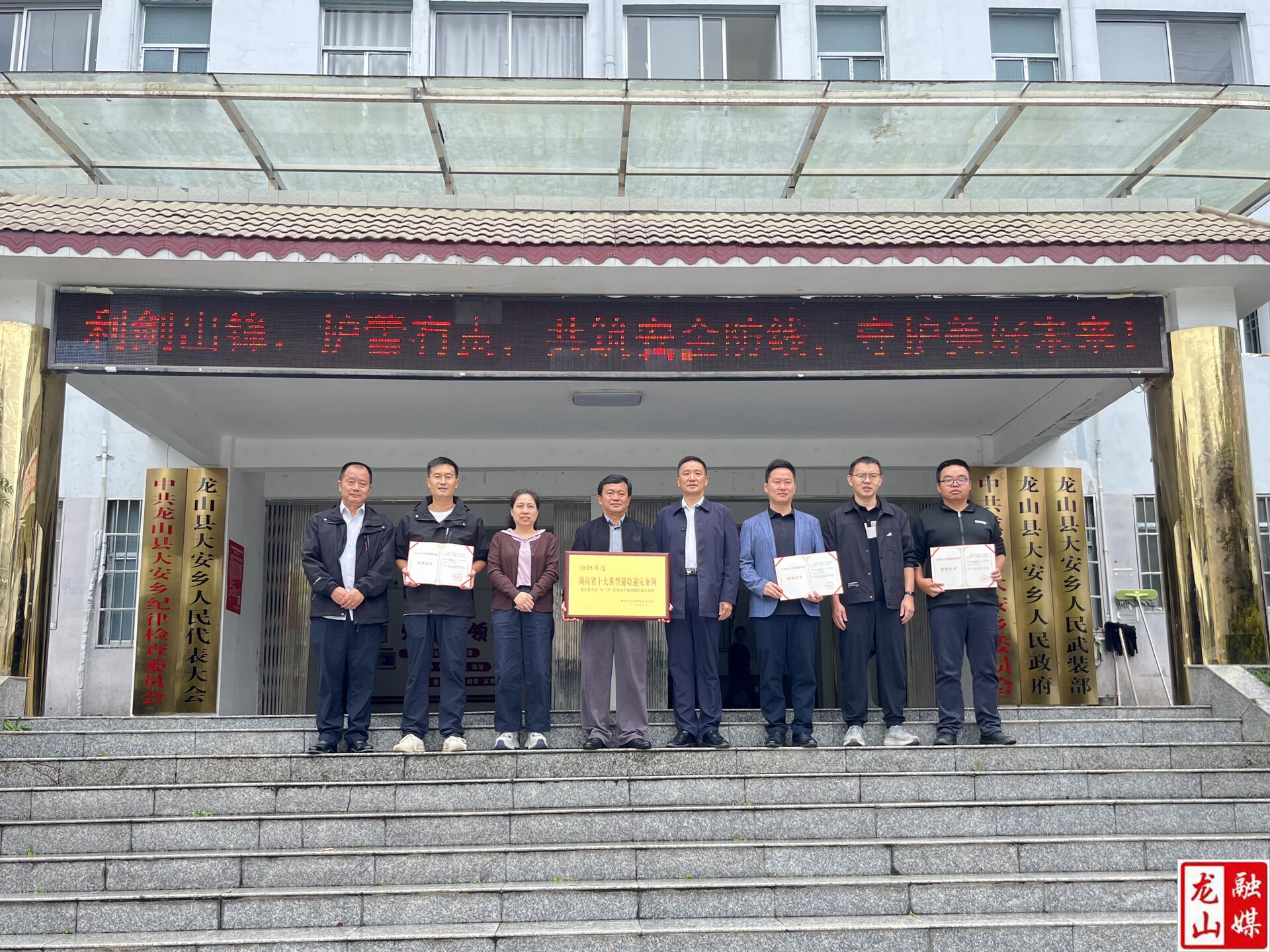 龙山县融媒体中心10月16日讯(通讯员  张兴 莫定超)10月15日,湘西州应急管理局副局长张敬率队赴龙山县大安乡,代表省应急委员会办公室颁发“湘西龙山大安‘6·19’山洪灾害成功避险避灾案例”荣誉奖牌及证书,表彰该案例入选“2025年度湖南省十大典型避险避灾案例”。州、县应急管理部门相关负责人及大安乡、光辉村干部代表共同参与表彰仪式。