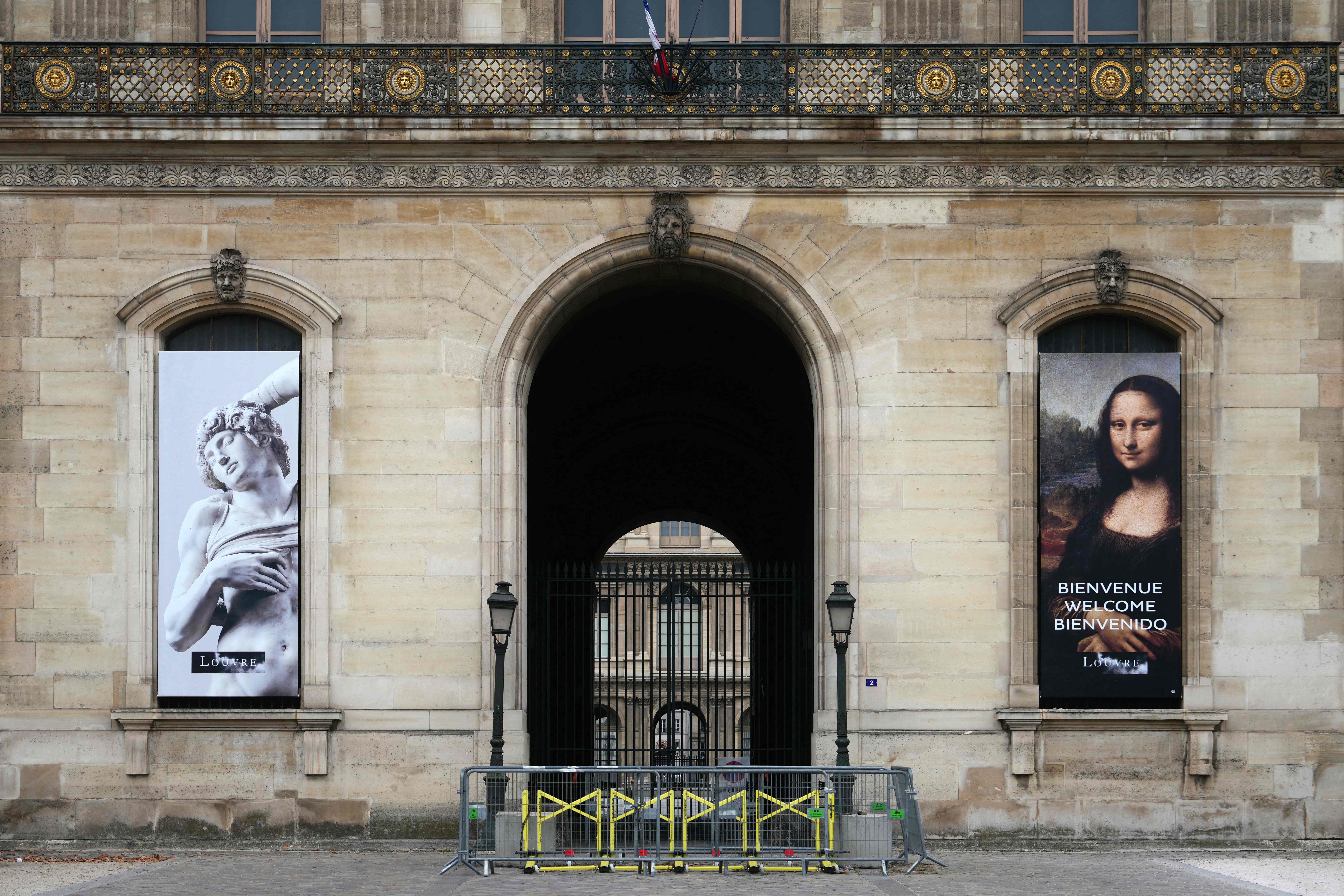 10月19日,在法国巴黎,抢劫事件发生后卢浮宫博物馆的一处通道被关闭。新华社/法新