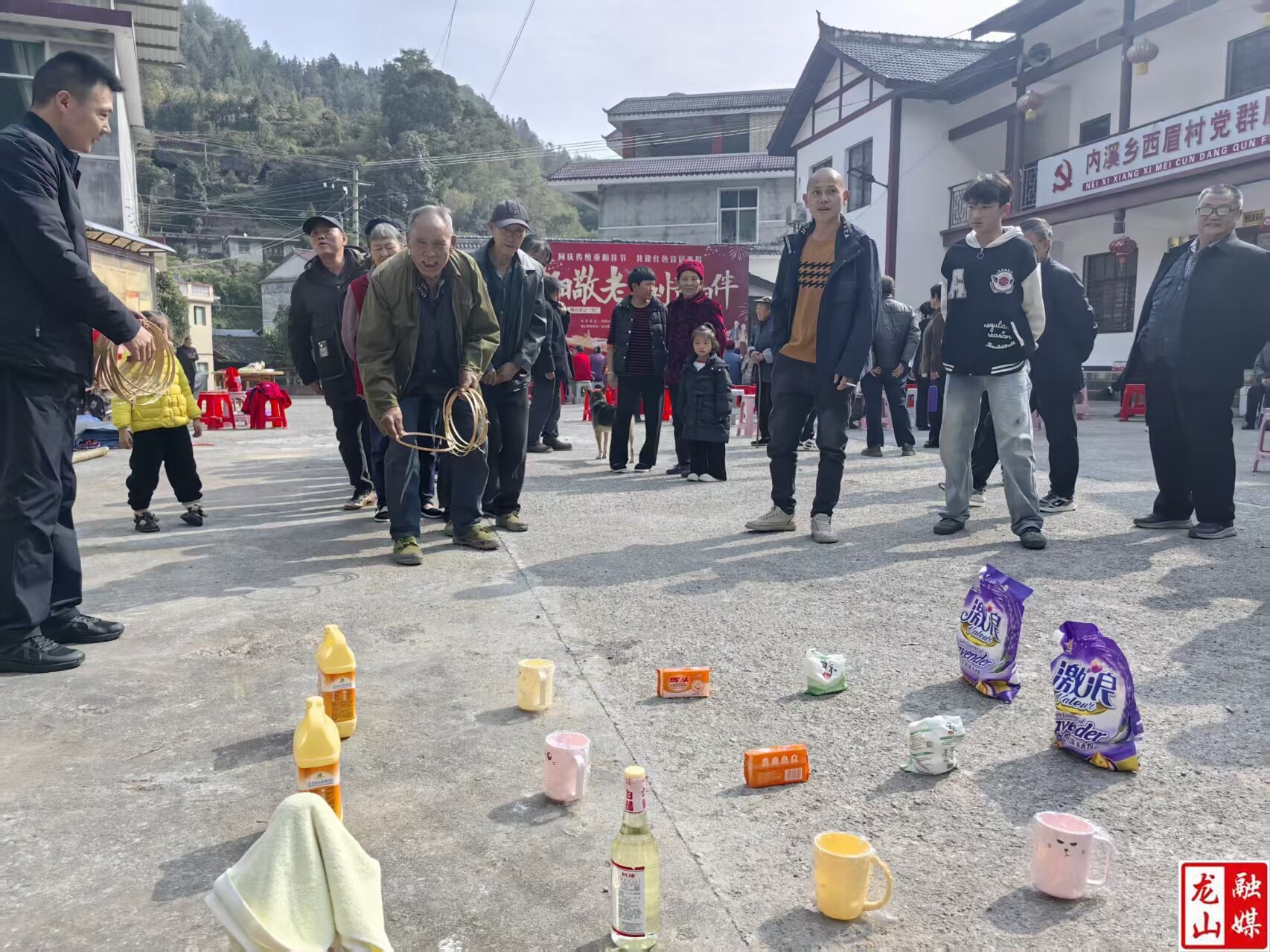 除了便民服务,一场充满乡土气息的文艺汇演和套圈圈活动,更让老人们乐开了怀。村里的文艺爱好者自编自演了广场舞、戏曲小段、九子鞭等节目,内容紧扣乡村振兴政策与孝老爱亲故事,熟悉的旋律、接地气的台词引发台下阵阵掌声。演出间隙,村“两委”还为老人们送上了各类生活用品,并与他们拉家常,询问生活需求,倾听他们对村庄发展的意见建议。