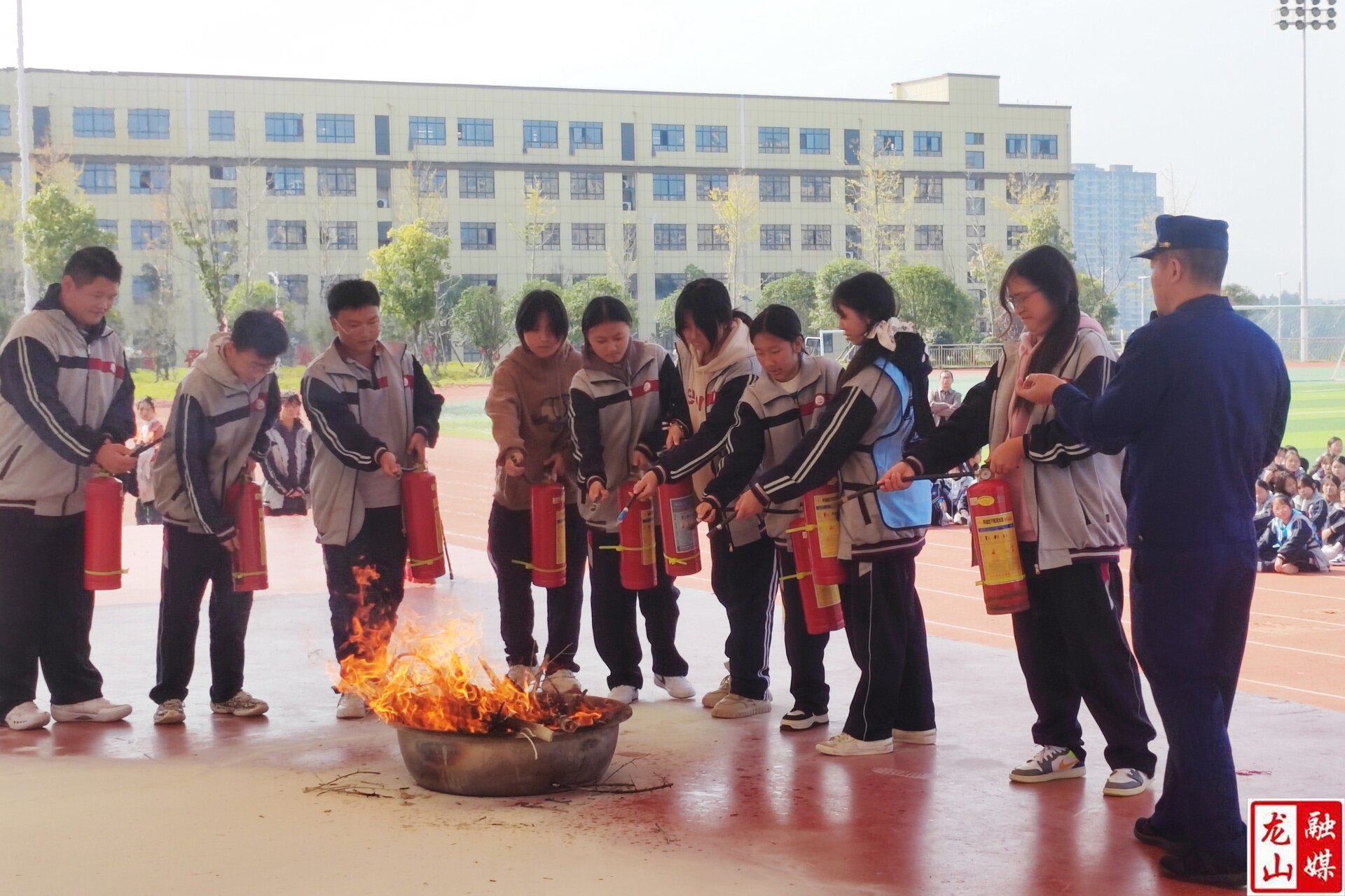 龙山县融媒体中心10月29日讯(通讯员  田媚)“瞄准火焰根部,记住‘提、拔、握、压’四字诀,冲!”这不是影视剧里的场景,而是龙山县高级中学操场上的一场“实战”。”10月29日,龙山县高级中学高一年级全体同学迎来了一堂别开生面的生命安全必修课——消防培训。与往常正襟危坐的讲座不同,这次培训秒变“大型互动体验现场”,问答声、欢呼声、掌声此起彼伏,活力值直接拉满!