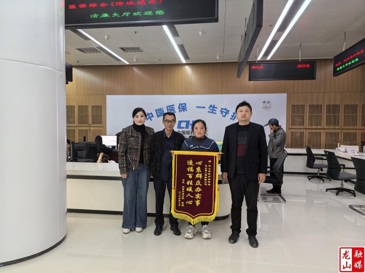 龙山县融媒体中心10月29日讯(通讯员  李昌晏 向靓靓)“真是太感谢你们了!14余万元的报销款及时到账,帮我们家渡过了难关!”10月29日早上,家住洗洛镇的彭女士手持一面写有“心系群众办实事.造福百姓暖人心”的锦旗,专程来到县市民之家的医保窗口,代此次因病住院的父亲向工作人员表达由衷的感谢。