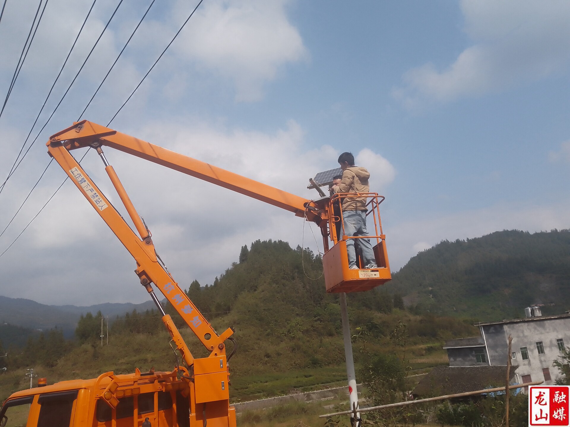针对我县山区阴雨天气多、光照不足的区位特征,专业操作人员杜涛携带专用工具奋勇登上高空作业车。他时而拧紧高光效LED光源节能灯接头,时而矫正太阳能板光源角度,时而更换新型锂电池组件,时而清理路灯杆周边的杂草和树枝……