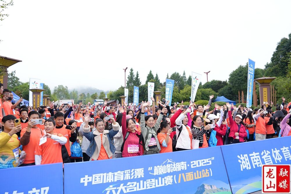 龙山县融媒体中心11月1日讯(记者 张前 马菲 莫代银 彭思倩)11月1日上午,龙山县里耶(秦简)博物馆前彩旗招展、人声鼎沸,中国体育彩票“巅峰湖南・2025”六大名山登山赛(八面山站)在此鸣枪开赛。作为年度收官之战,本站赛事备受关注,来自全国的1100余名登山爱好者身着专业装备,迎着晨雾整装出发,向“南方空中草原”八面山迈进,为全年赛事的全民健身活力写下终章。