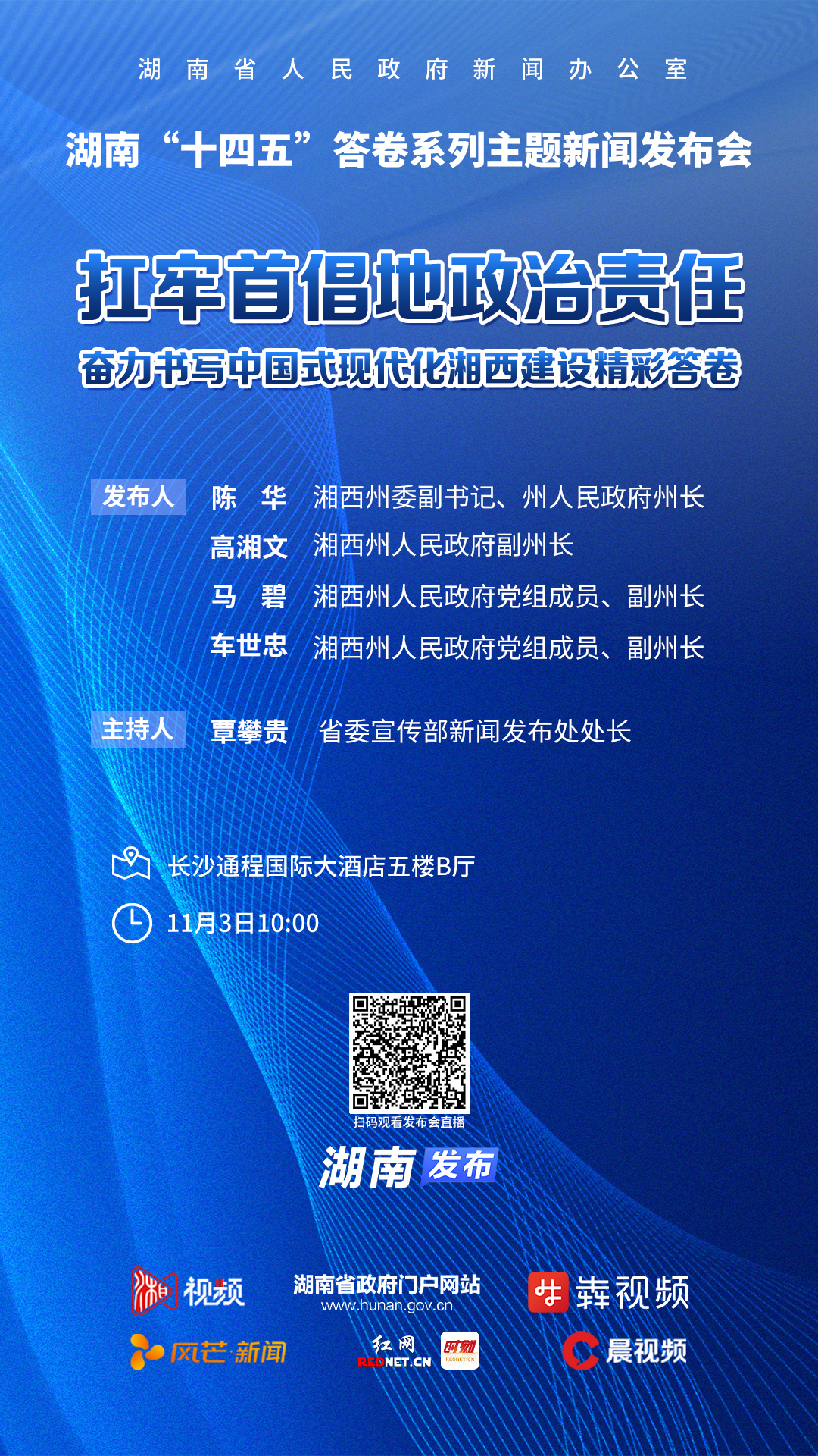 预告海报|湖南“十四五”答卷系列主题新闻发布会:扛牢首倡地政治责任 奋力书写中国式现代化湘西建设精彩答卷