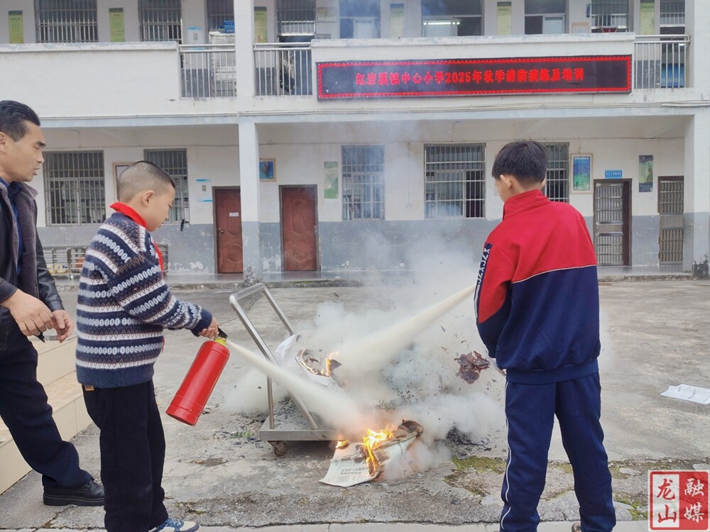 龙山县融媒体中心11月6日讯(通讯员 向鑫 向清艾 彭越 陈子怡)11月6日,红岩溪镇中心小学开展了消防应急疏散演练。