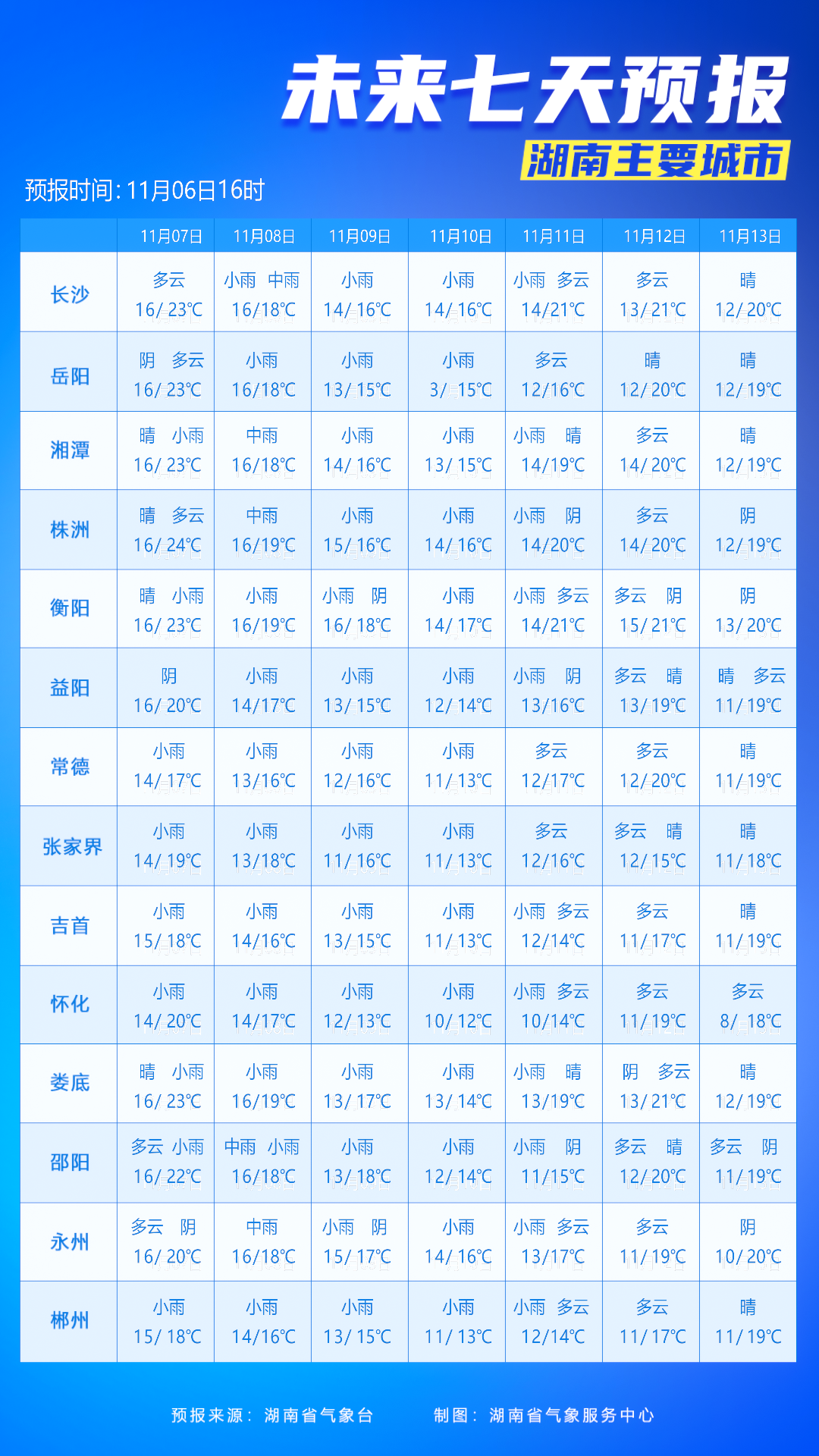 2025-11-07 08:31:08          来源:湖南省气象台、长沙气象、中国天气网 | 编辑:朱柯源 |          浏览量:1910