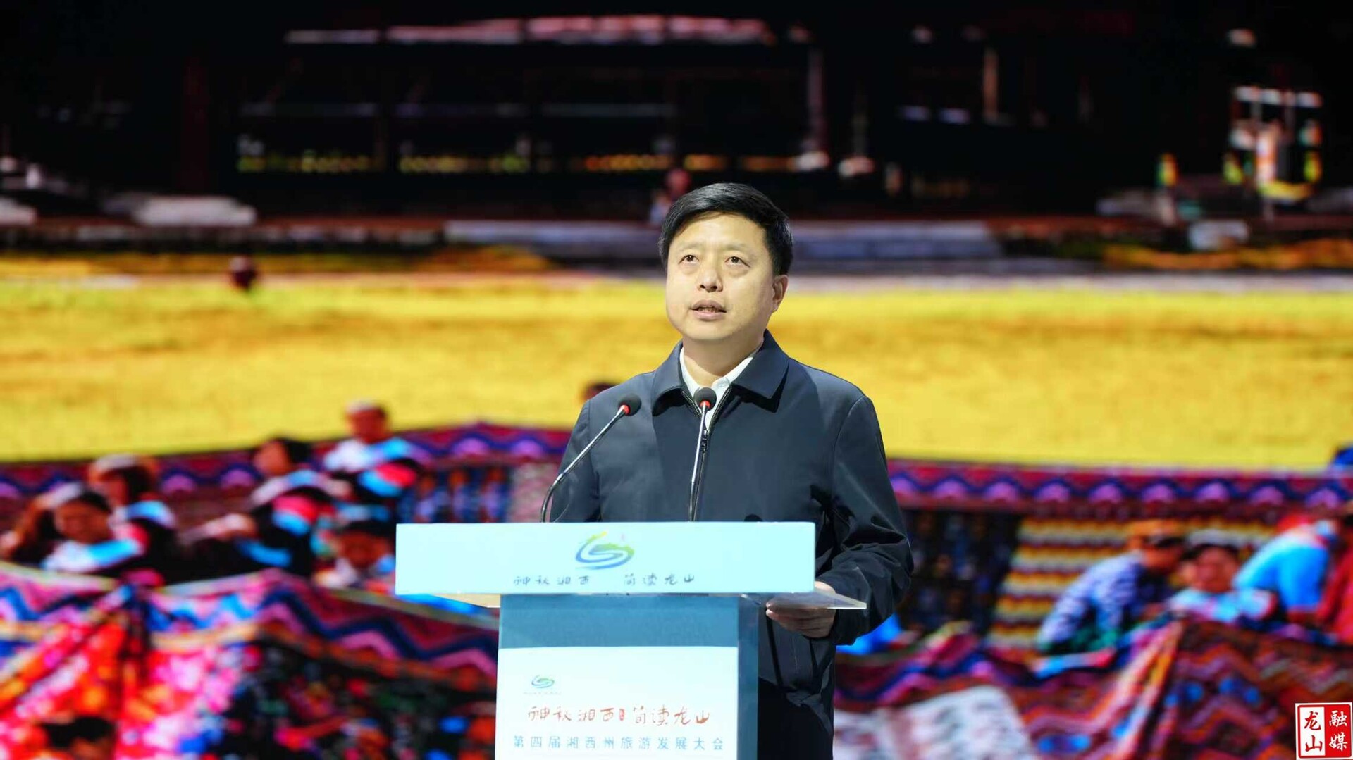 龙山县融媒体中心11月8日讯(记者  张前 向宇 罗佳清 彭思倩)11月7日下午3时,以"神秘湘西·简读龙山"为主题的第四届湘西州旅游发展大会暨文化旅游推介会在龙山县开幕。州委书记刘涛宣布大会开幕。州委副书记、州长陈华主持。省文化和旅游厅副厅长颜长文致辞。