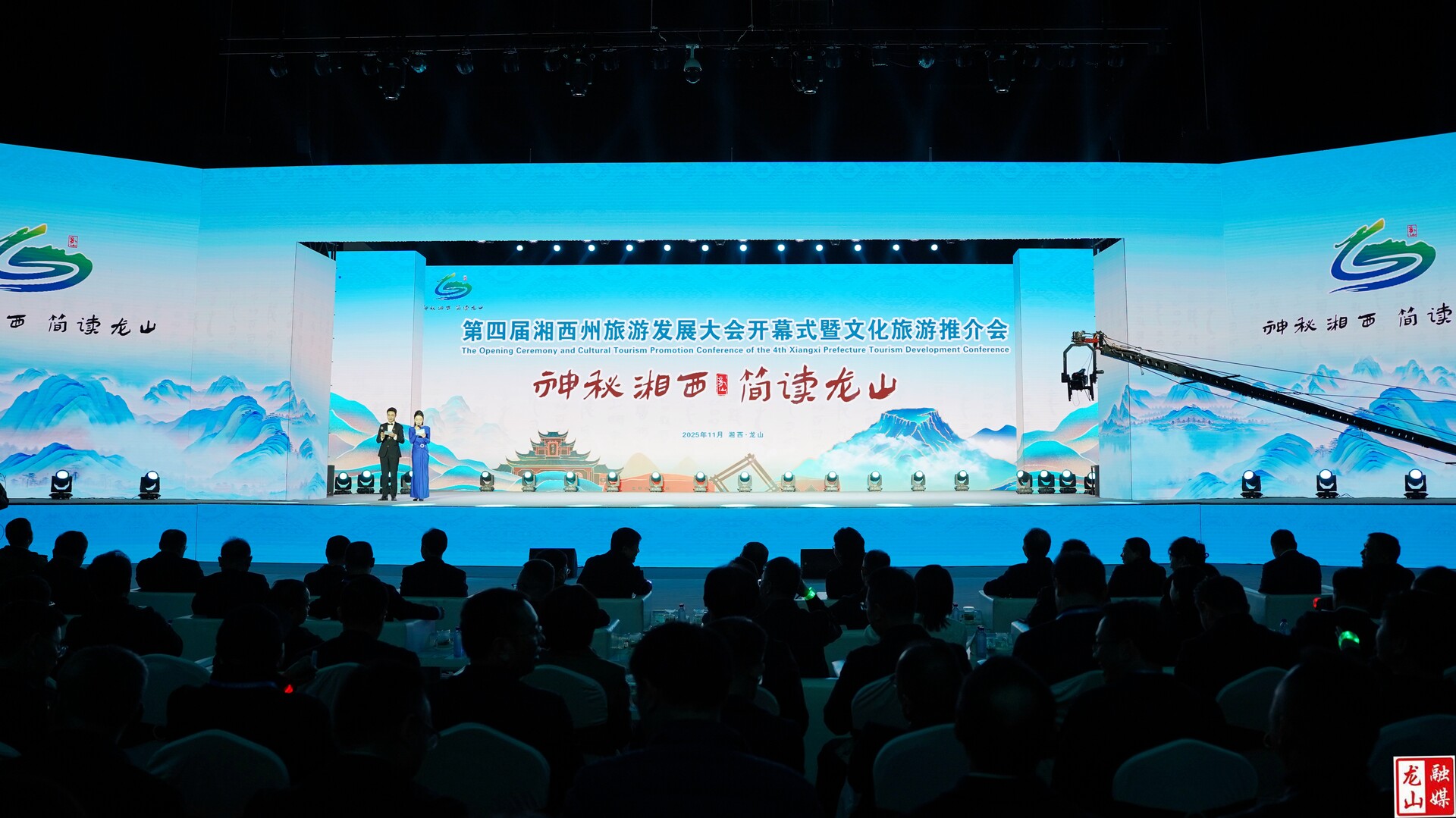 龙山县融媒体中心11月8日讯(记者 张前 向宇 罗佳清 彭思倩)11月7日下午3时,以"神秘湘西·简读龙山"为主题的第四届湘西州旅游发展大会暨文化旅游推介会在龙山县开幕。州委书记刘涛宣布大会开幕。州委副书记、州长陈华主持。省文化和旅游厅副厅长颜长文致辞。