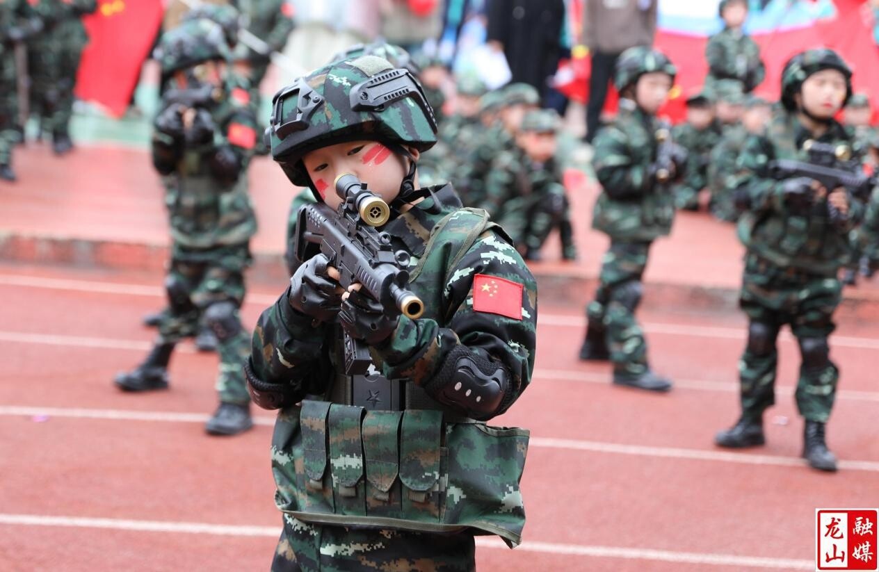 最先入场的是国旗护卫队——六名升旗手高擎五星红旗,步伐坚定,彩旗方阵紧随其后,猎猎作响的旗帜瞬间点燃全场激情。校旗、会旗、主题展板方阵依次通过主席台,蓝底白字的“跆拳砺志 足梦飞扬”在阳光下熠熠生辉。最吸睛的当属三年级啦啦操方阵:小队员们手持闪耀彩花,踏着欢快节奏时而抬手、时而跳跃、时而旋转,每一个动作都充满童真童趣,每一个眼神都闪耀着专注与热爱,稚嫩的脸上写满朝气,看台掌声雷动;足球少年方阵则把平日训练的足球当“道具”,踩球、颠球、侧空翻,用脚下功夫炫出青春,用铿锵口号传递梦想。一年级“小豆包特种兵”萌酷登场——迷彩小军帽、迷你战术背心,他们或匍匐穿越“铁丝网”,或抱膝侧滚翻,奶声奶气却铿锵有力地喊出“少年强,中国强!”——童真与热血交织,瞬间萌化全场,欢呼声直冲冬日云霄。随后,该校负责人宣布:“龙山县思源实验学校‘跆拳励志·足梦飞扬第十届冬季运动会开幕!”同学们欢呼,掌声雷动,将现场气氛推向最高潮。