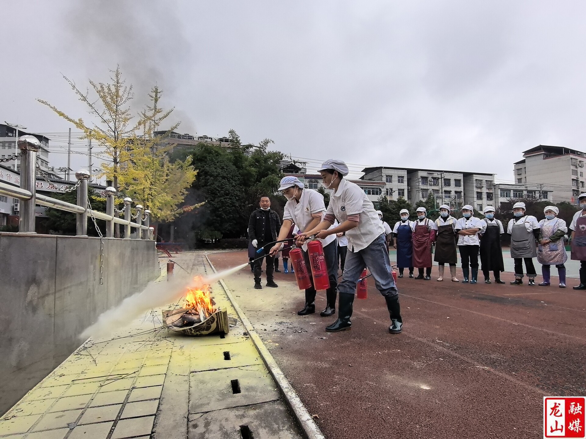 为提升全员安全防护意识和能力,学校还对全体食堂工人、安保人员进行了消防常识宣讲,并现场组织食堂工人、安保人员进行灭火演练。