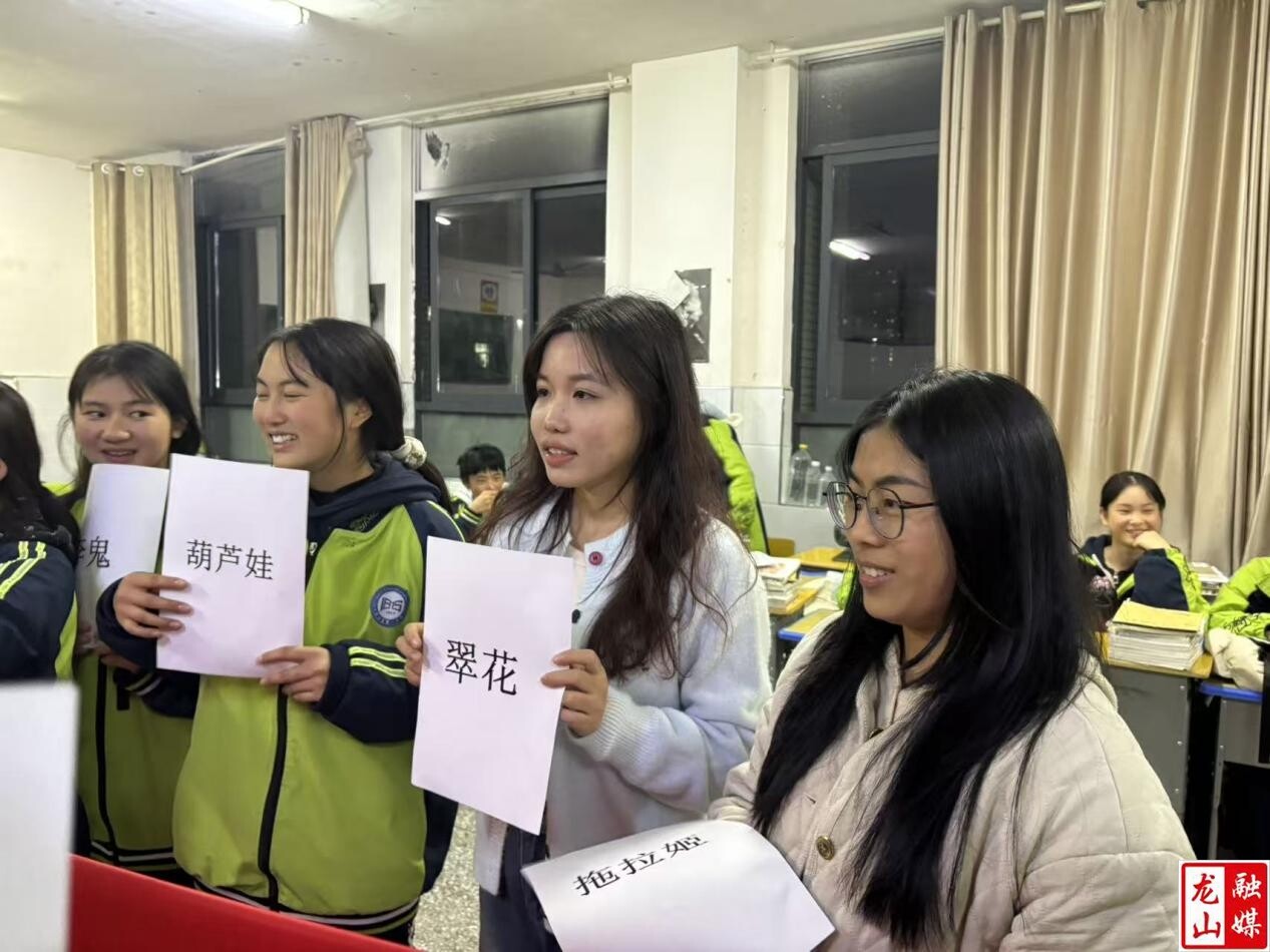 活动现场暖意融融,趣味十足的互动游戏成为破冰 “密钥”。“面具舞”环节中,学生佩戴科任教师面具随心舞动,肢体的舒展打破了日常的拘谨;“名字大作战” 里,大家通过趣味问答快速熟记彼此特点,笑声与欢呼声此起彼伏。在混合组队的协作模式下,原本隔着讲台的师生并肩作战,在游戏的默契配合中悄然拉近了心理距离,刻板印象在欢声笑语中逐渐消融。