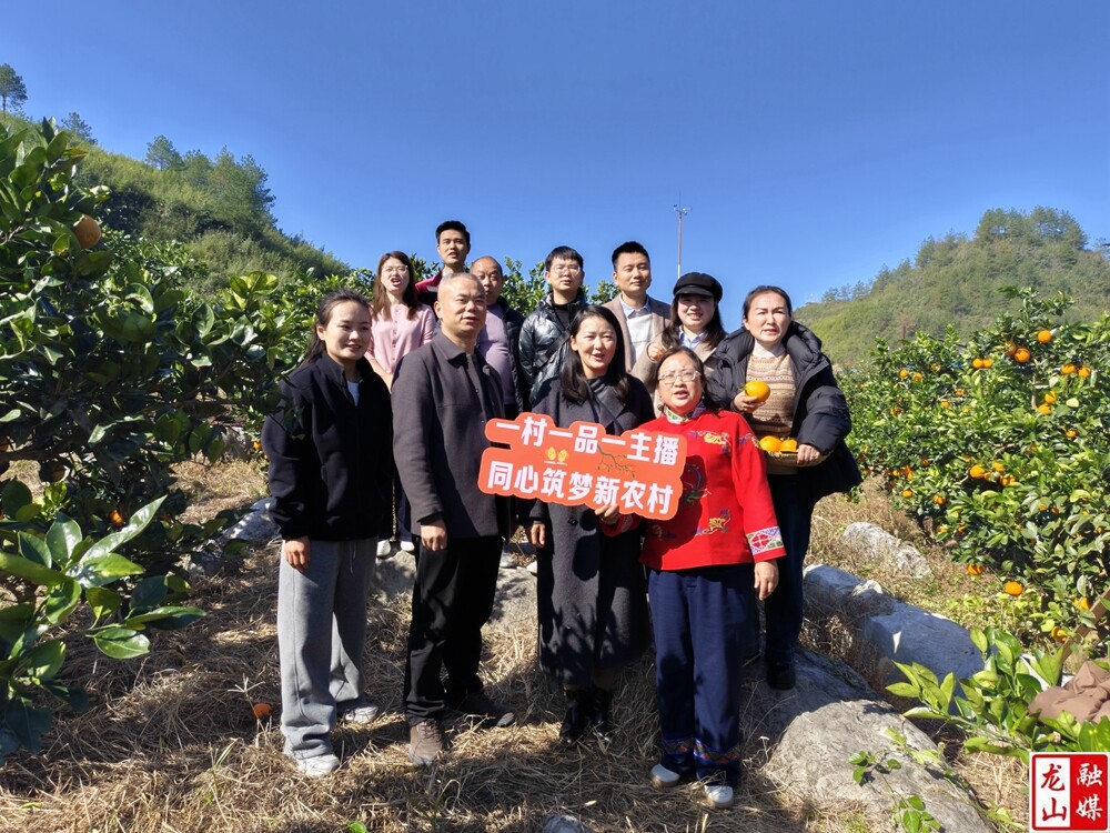 龙山县融媒体中心11月27日讯(记者 向宇)11月26日,龙山县“一村一品一主播,同心筑梦新农村”公益助农直播暨爱媛果冻橙采摘节,在苗儿滩镇隆头社区果冻橙标准化种植基地甜蜜启幕。龙山县新阶联、龙山农商银行助农主播团集结亮相,开启为期2天的直播带货接力赛,为冬日山乡注入一股“云端”暖流。