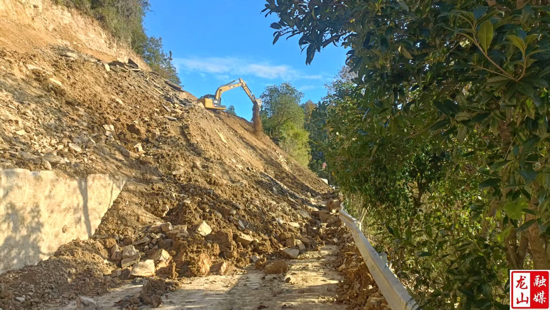 龙山县融媒体中心11月27日讯(通讯员 向前)近日,因连续降雨,导致内溪乡五官村喇宗坡路段发生山体滑坡,大量泥石倾泻而下,通组道路被阻断,边沟和护栏被掩埋,不仅给村民的日常出行带来极大的安全隐患,更直接影响柑橘等农副产品的运输和人民群众的生产生活秩序。
