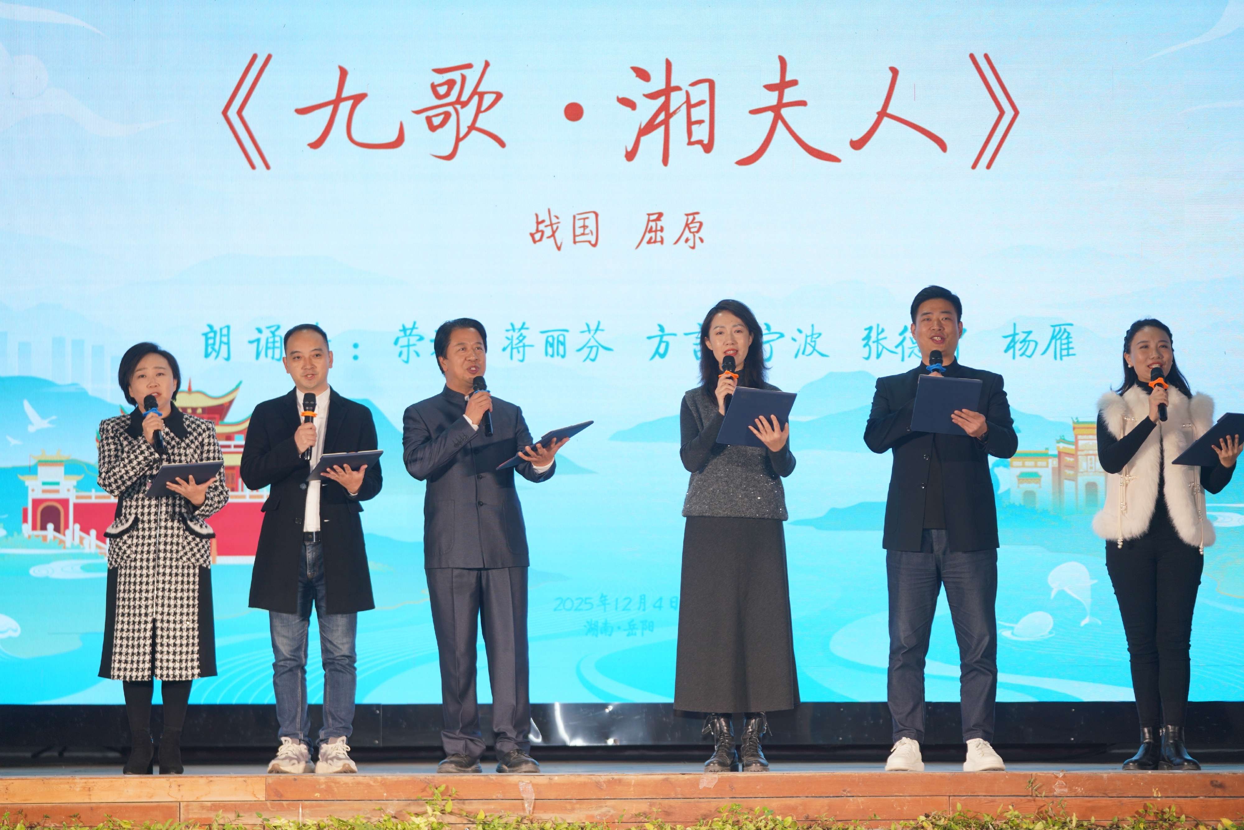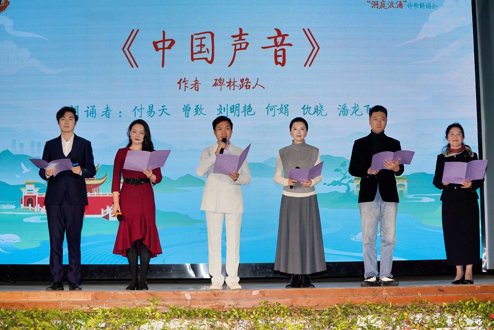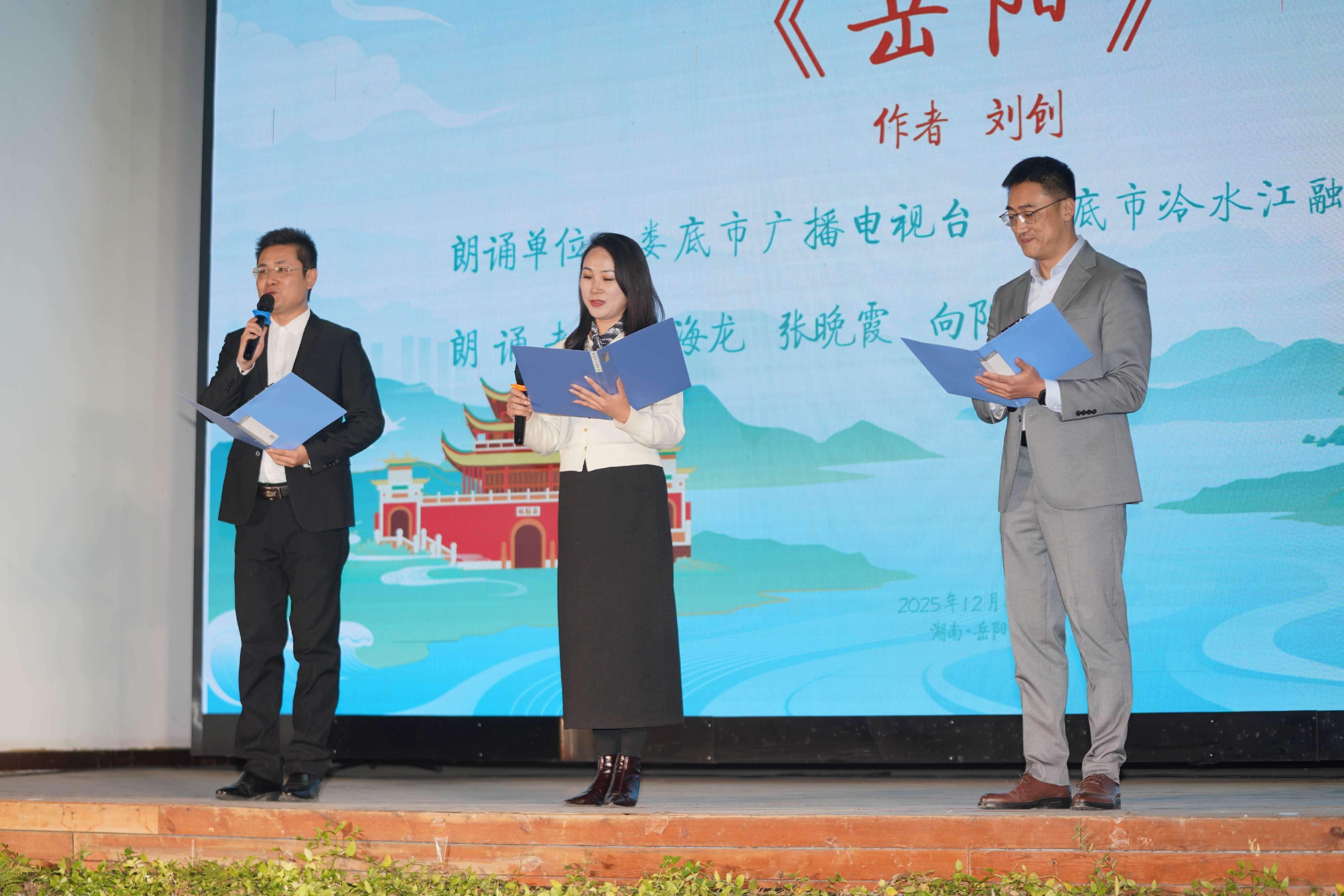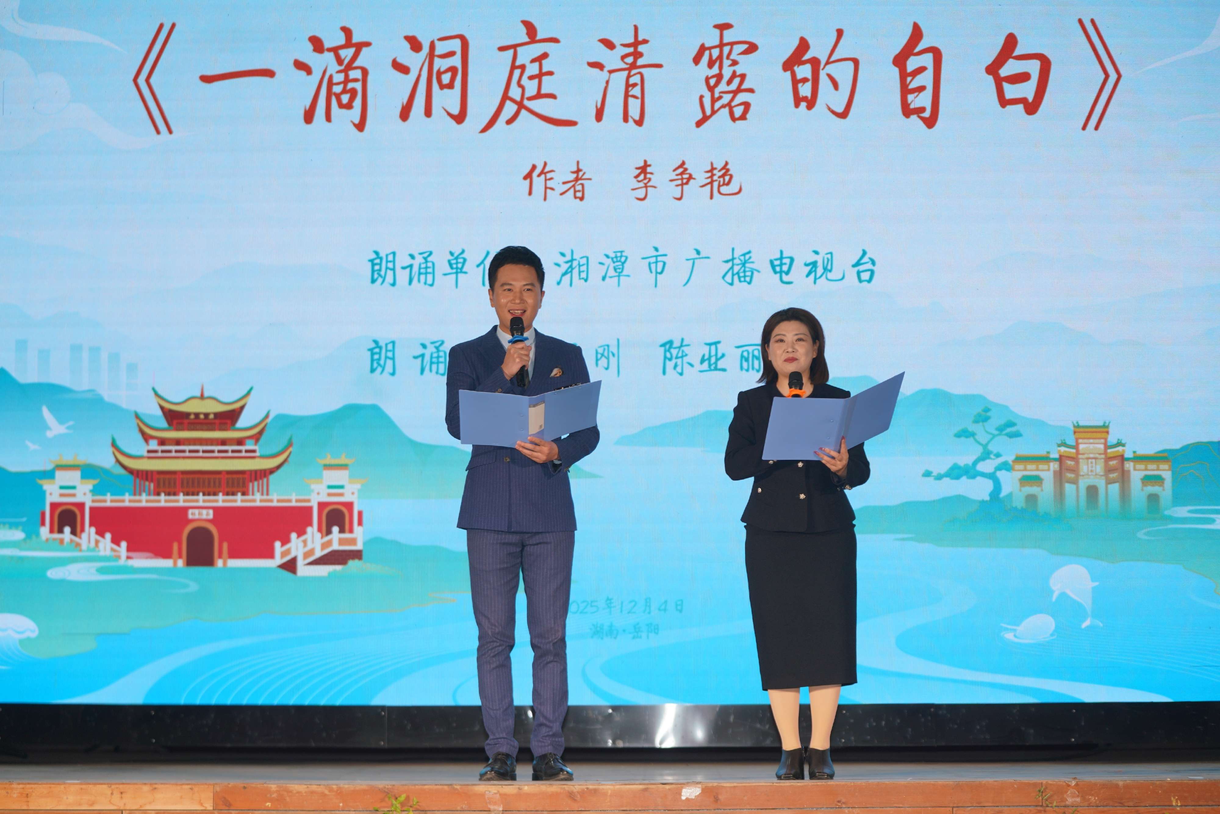 4号晚上,全体与会代表举行了“洞庭波涌”诗歌朗诵会,120名播音员主持人深情吟诵《登岳阳楼》《天下岳阳》《洞庭壮阔凭岳阳》等近20篇经典诗文,以《中国声音》压轴,呈现一场融合湖湘文脉与时代精神的视听盛宴。