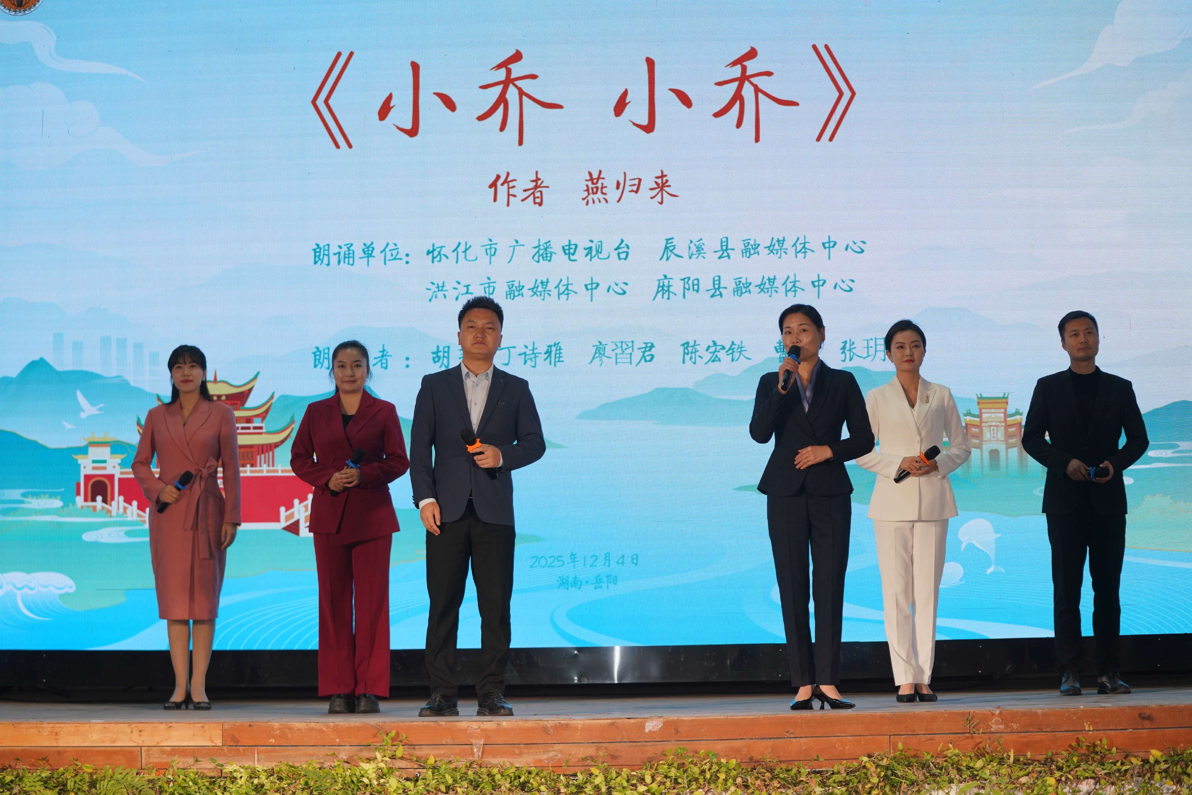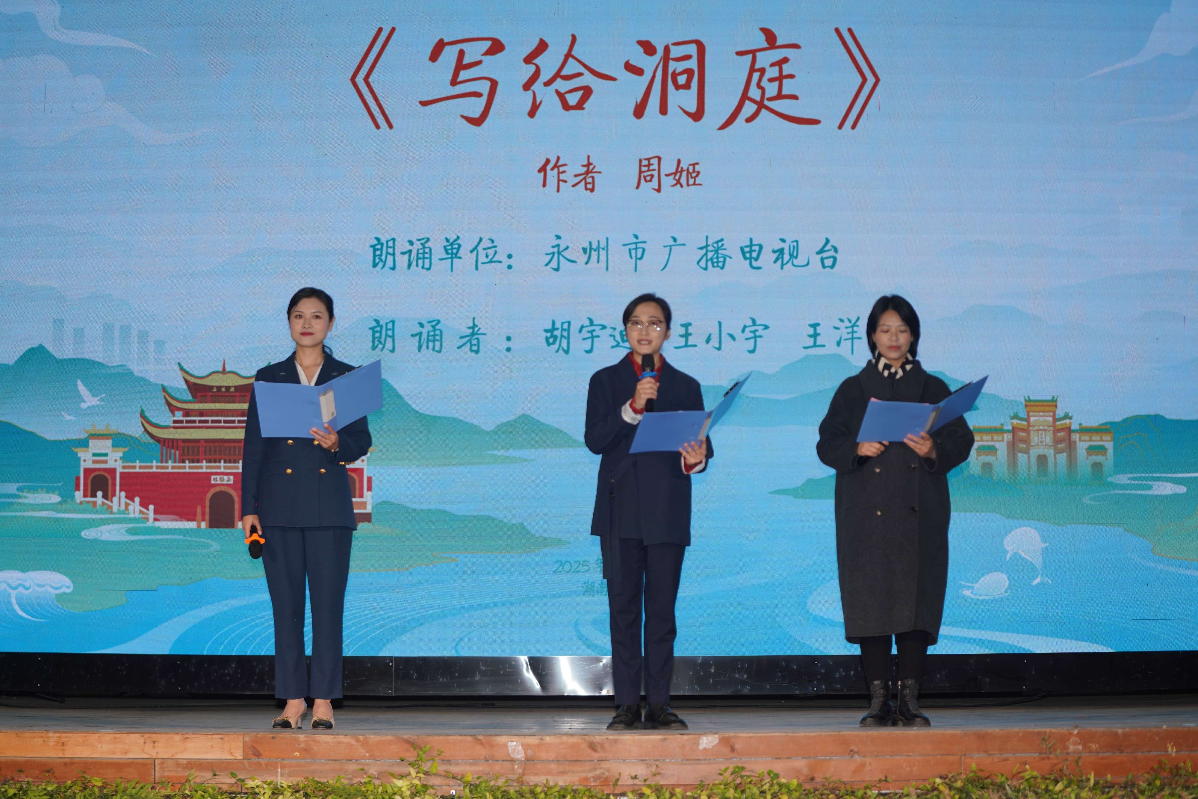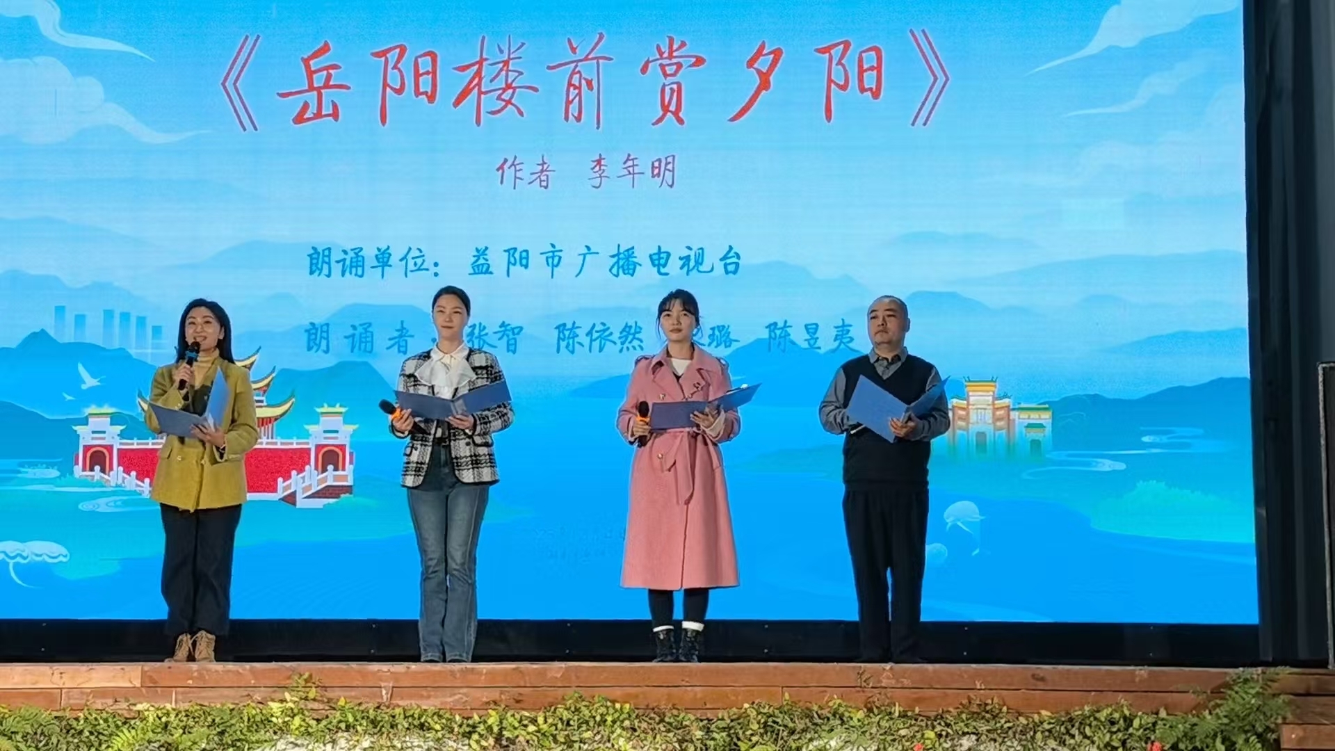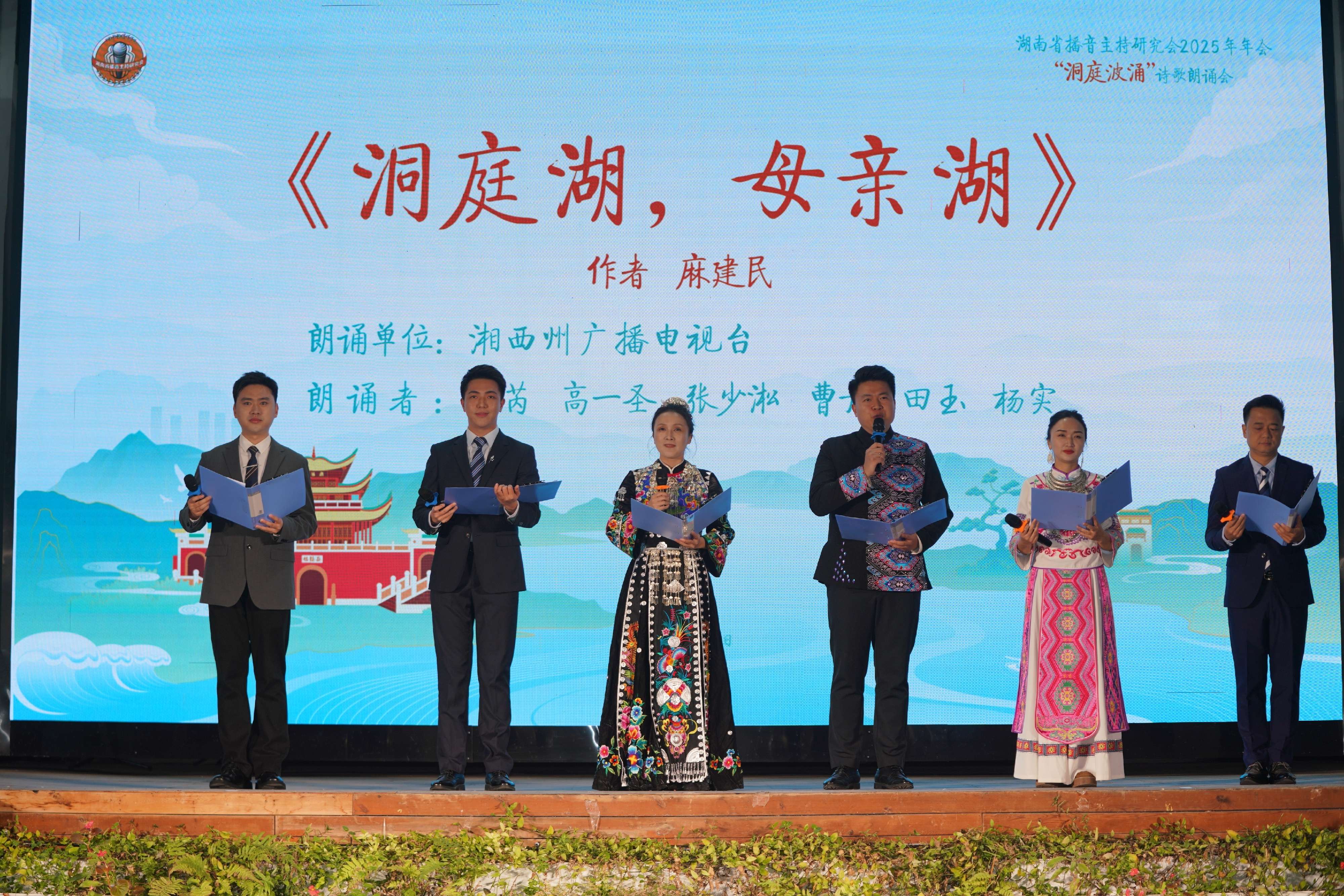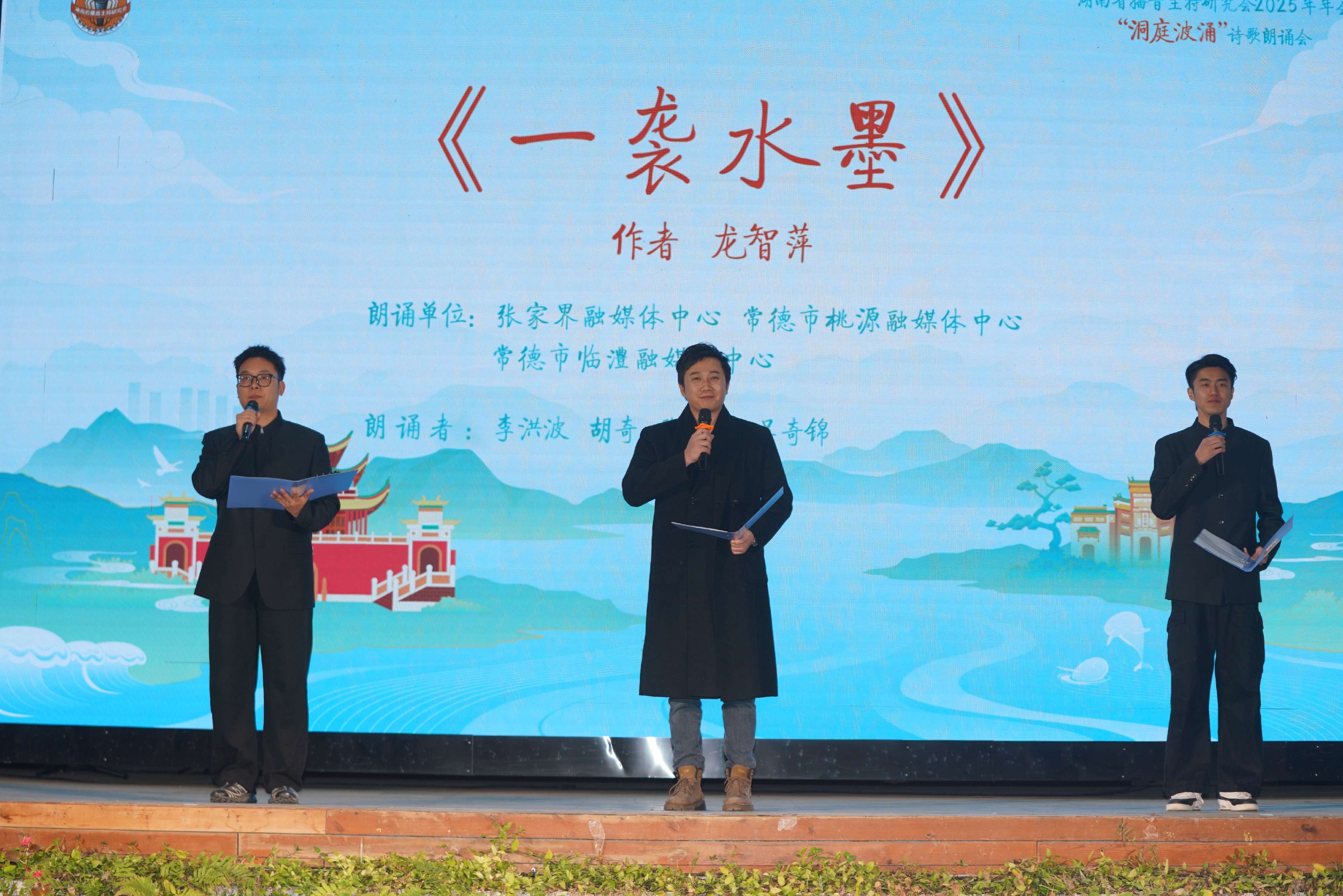 4号晚上,全体与会代表举行了“洞庭波涌”诗歌朗诵会,120名播音员主持人深情吟诵《登岳阳楼》《天下岳阳》《洞庭壮阔凭岳阳》等近20篇经典诗文,以《中国声音》压轴,呈现一场融合湖湘文脉与时代精神的视听盛宴。