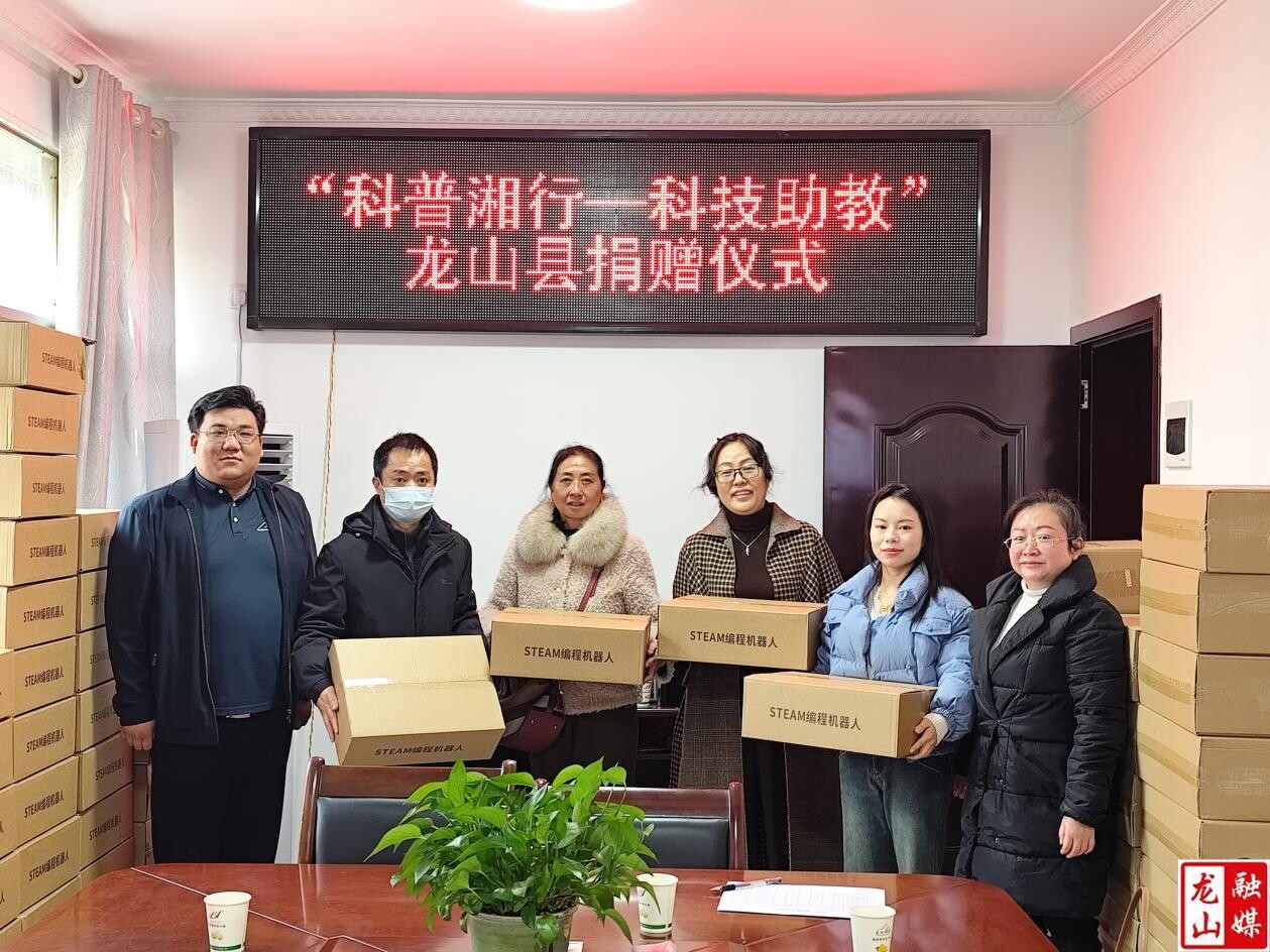 捐赠现场,各类先进教学设备和科普资源有序交接,这些物资将用于改善学校教学条件,激发学生对科学的兴趣,助力学生开启科技探索之旅,为龙山教育注入新的活力与动能。