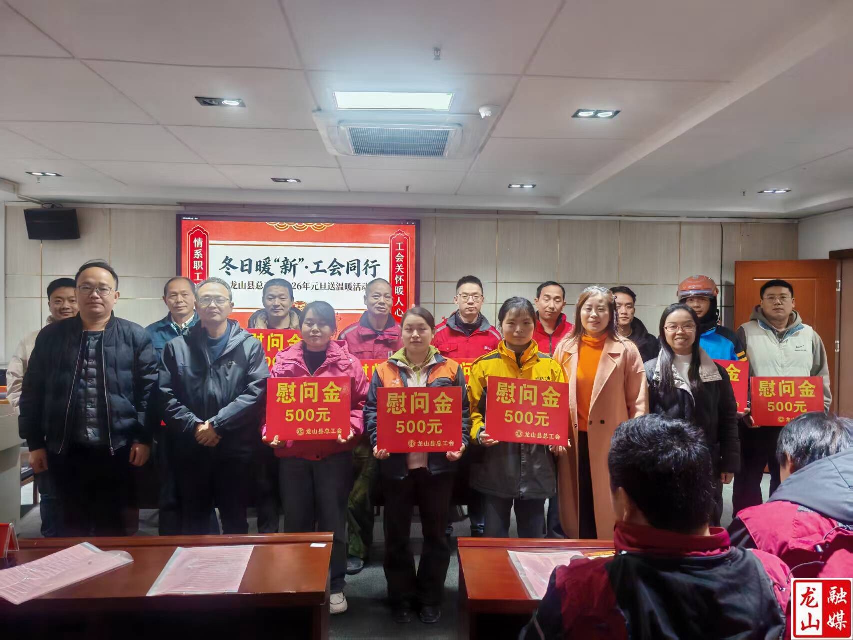 龙山县融媒体中心12月24日讯(通讯员  刘玉平)12月24日,元旦来临之际,县总工会举办“冬日暖‘新’·工会同行”元旦送温暖活动。快递员、送餐员、货车司机等新就业形态劳动者以及快递企业负责人共80余人参加活动。