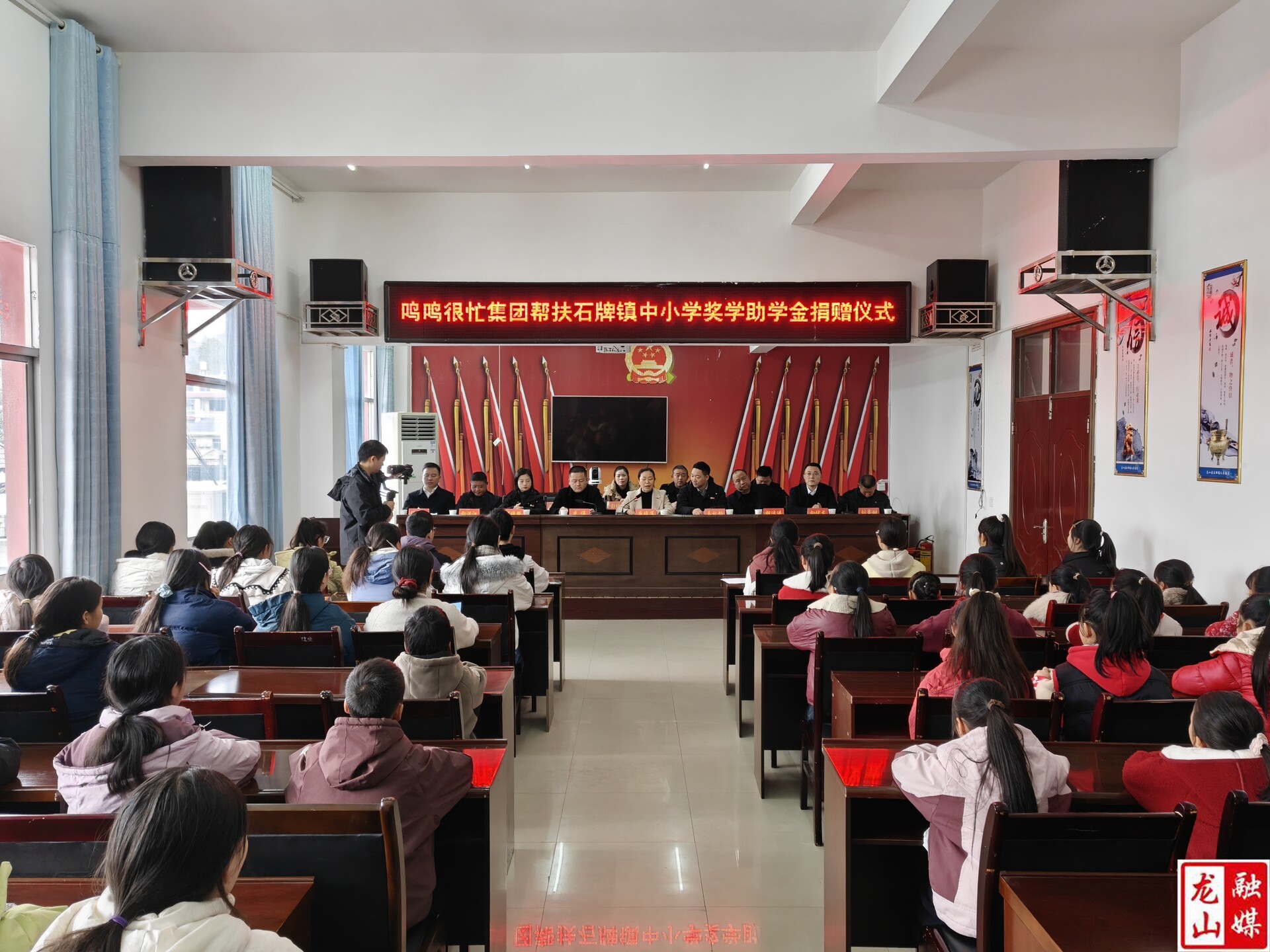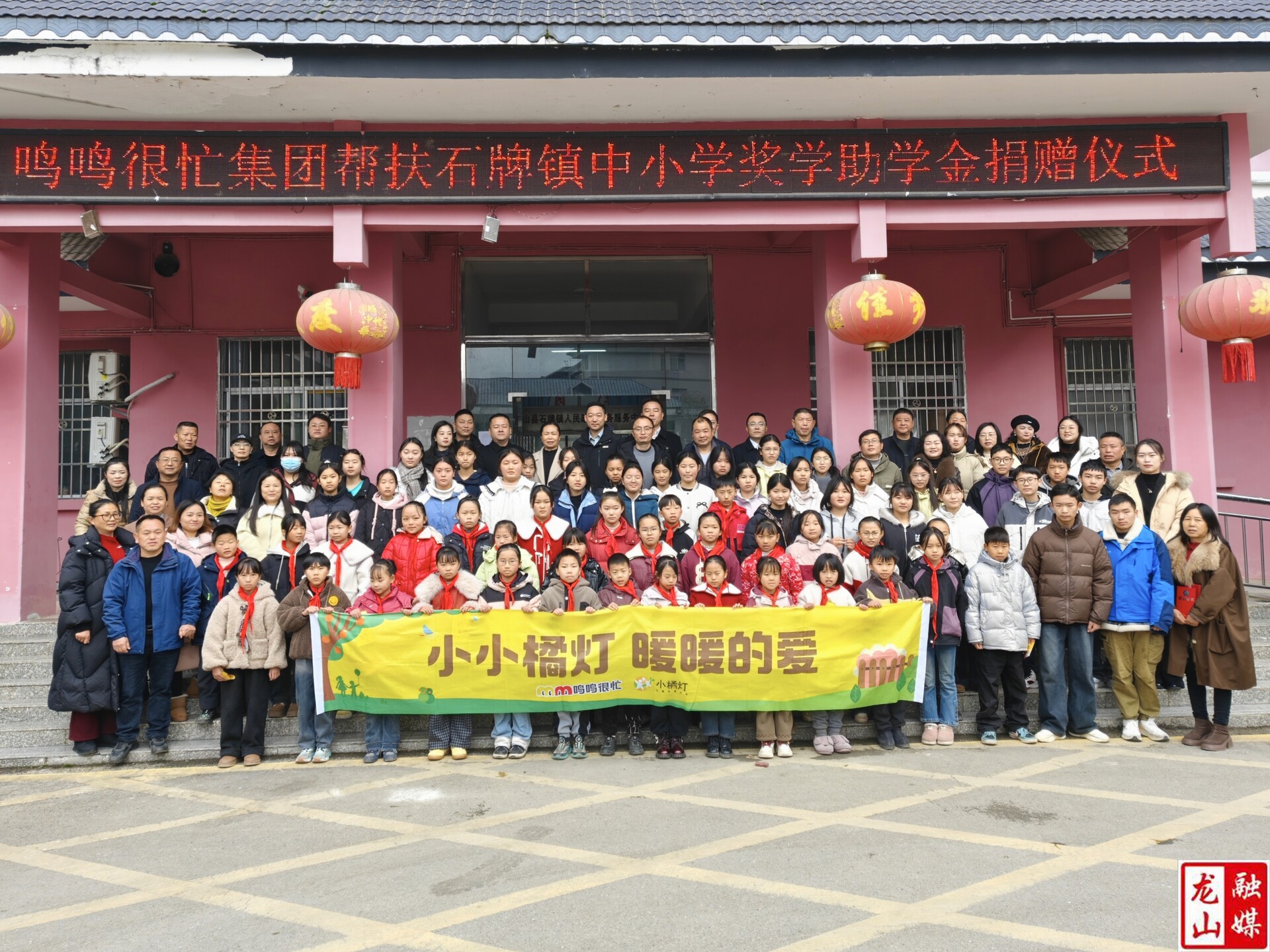 活动现场,宣读了《龙山县石牌镇中小学“小橘灯助学金”方案》《龙山县石牌镇中小学“教师奖励金”方案》及荣获鸣鸣很忙集团奖励金、助学金人员名单,并为相关学生、教师发放助学金、奖励金。