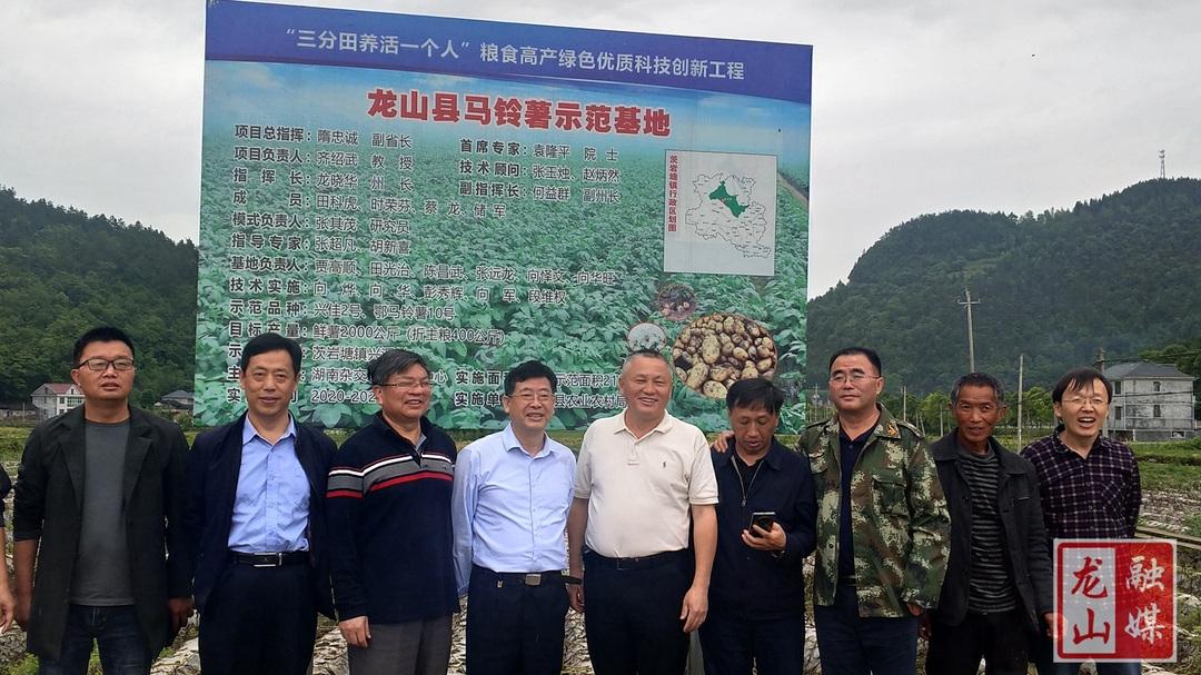 据了解,湖南杂交水稻研究中心实施的“三一工程”示范基地,为袁隆平院士提出的“三分地养活一个人”粮食高产绿色优质科技创新工程项目。该项目通过一季超级杂交稻与一季马铃薯轮作,达到每亩稻田年生产粮食1200公斤以上(超级杂交稻亩产800公斤,马铃薯2000公斤折主粮400公斤),按三分地计算,年生产粮食360公斤,满足一个人一年口粮的需要。该项目龙山基地由龙山县农业农村局具体组织实施,基地以超级杂交稻和马铃薯绿色、高效、高质栽培为目标,采取“超级杂交稻+马铃薯”轮作模式,马铃薯种植集成种薯防病处理、使用生物农药部分替代化学农药、使用有机肥部分替代复合肥、控氮肥增施钾肥等关键技术,减(化)肥减药不减效。种植的马铃薯品种为兴佳2号,实现了亩产马铃薯2480.6公斤(折主粮496.12公斤),化学肥料减量20%、农药减量30%的项目目标。