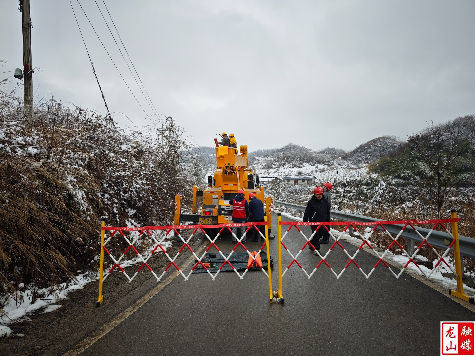 龙山县融媒体中心1月5日讯(记者  刘润)连日来,随着寒潮来袭,气温下降,国网龙山县供电公司加强日常供电巡查。1月4日节后上班第一天,工作人员对雪后特巡排查出的里耶八面山10千伏高压供电线路引线故障进行紧急消缺,让山上的用户在低温冰冻中用电“无感”。