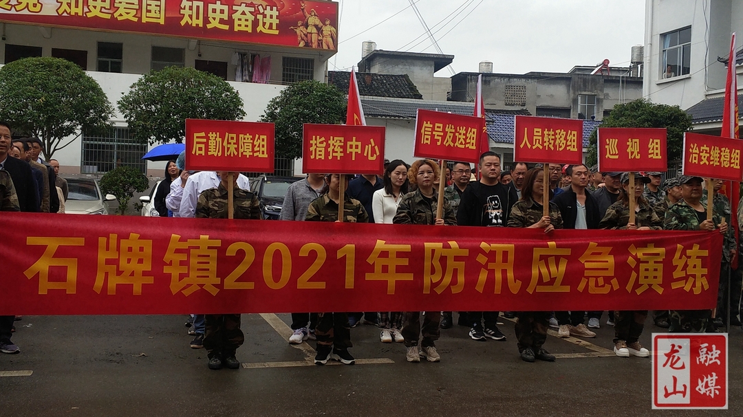 随着现场警报声、锣声、口哨声的响起,由石牌镇机关干部、应急民兵抢险队员、自然资源所、卧龙水库管理所、派出所干警、村辅警等组成的现场巡视组、信号组、人员转移组、治安维稳组、医疗救护组、应急抢险阻、后勤保障组等60多人迅速集结,整装出发,跑步赶往卧龙水库一带现场,拉开了防洪抢险应急演练的帷幕。接县防汛办通知,由于受强对流天气影响,石牌镇出现大暴雨级别降雨,已严重危及卧龙水库周边群众安全,情况万分紧急。