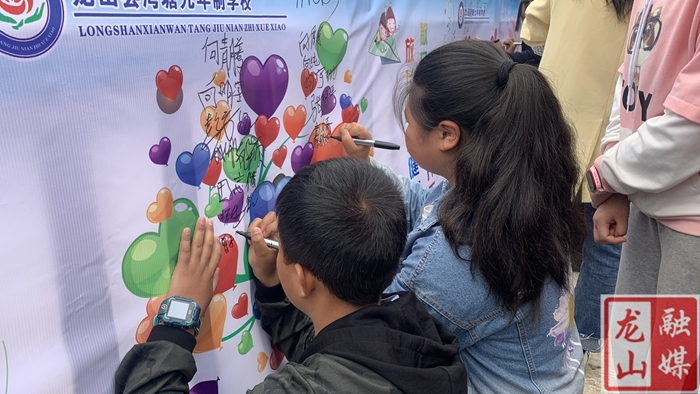 师生纷纷拿起笔,在横幅上签下自己的名字,表示一定要积极宣传心理健康知识,从自己做起,保持积极心态、关爱自我,营造良好的学习和生活氛围。