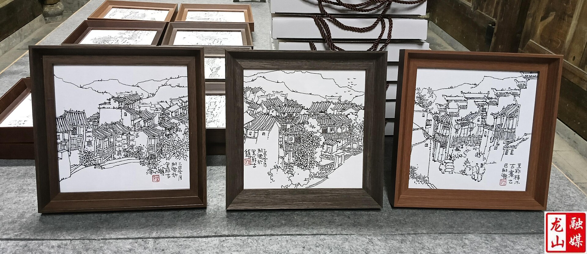 春节临近,叶明德推出了新近创作的“迁陵地势美”系列文创作品。邀约了国内书法名家题字,每一幅里耶历史文化街区速写作品原件都能在里耶本地找到熟悉的场景,用速写、书法的艺术形式对里耶人文故事予以再现,满是人间韵味。