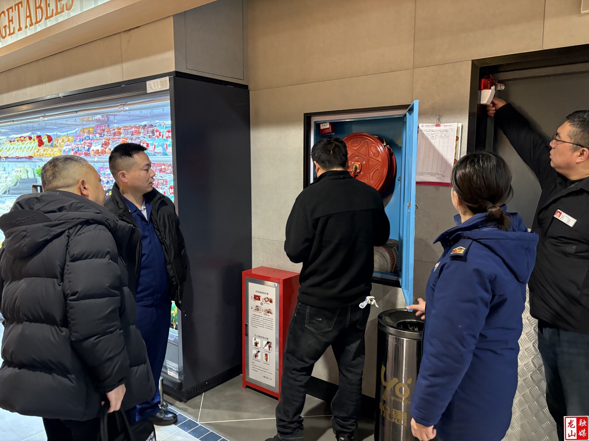 龙山县融媒体中心2月6日讯(记者 向德银)2月6日,县商务局、县市监局、县应急管理局、县消防救援大队等部门联合开展2026年春节节前安全生产专项检查,全力筑牢辖区安全防线。副县长尚晓琴参加检查。