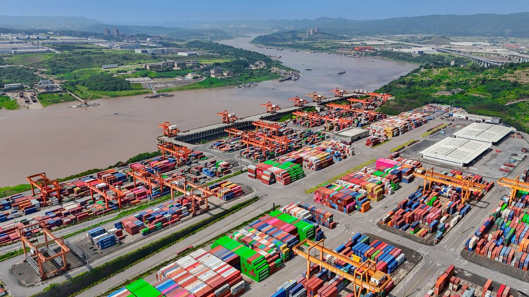 果园港位于重庆市两江新区,是“一带一路”与长江经济带的战略联结点、川渝东出长江第一开放门户,承担承东启西、连接南北、联通西部内陆与国际市场的关键功能。依托“水铁公”一体化集疏运体系,货物在果园港快速中转集散。如今,它已成为西部地区联通全球的“中转站”。