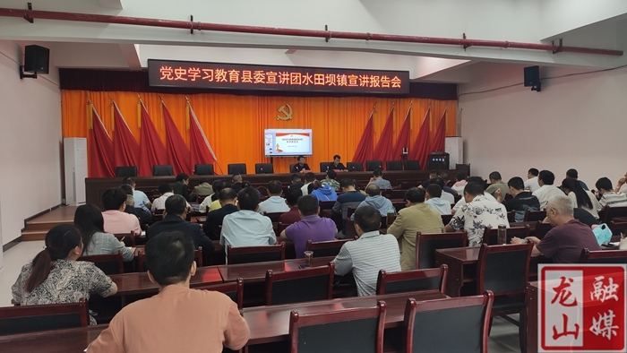 龙山县融媒体中心6月4日讯(通讯员 李思源 )6月2日上午,县委宣讲团到水田坝镇开展党史学习教育宣讲,水田坝镇全体干部职工参加报告会。