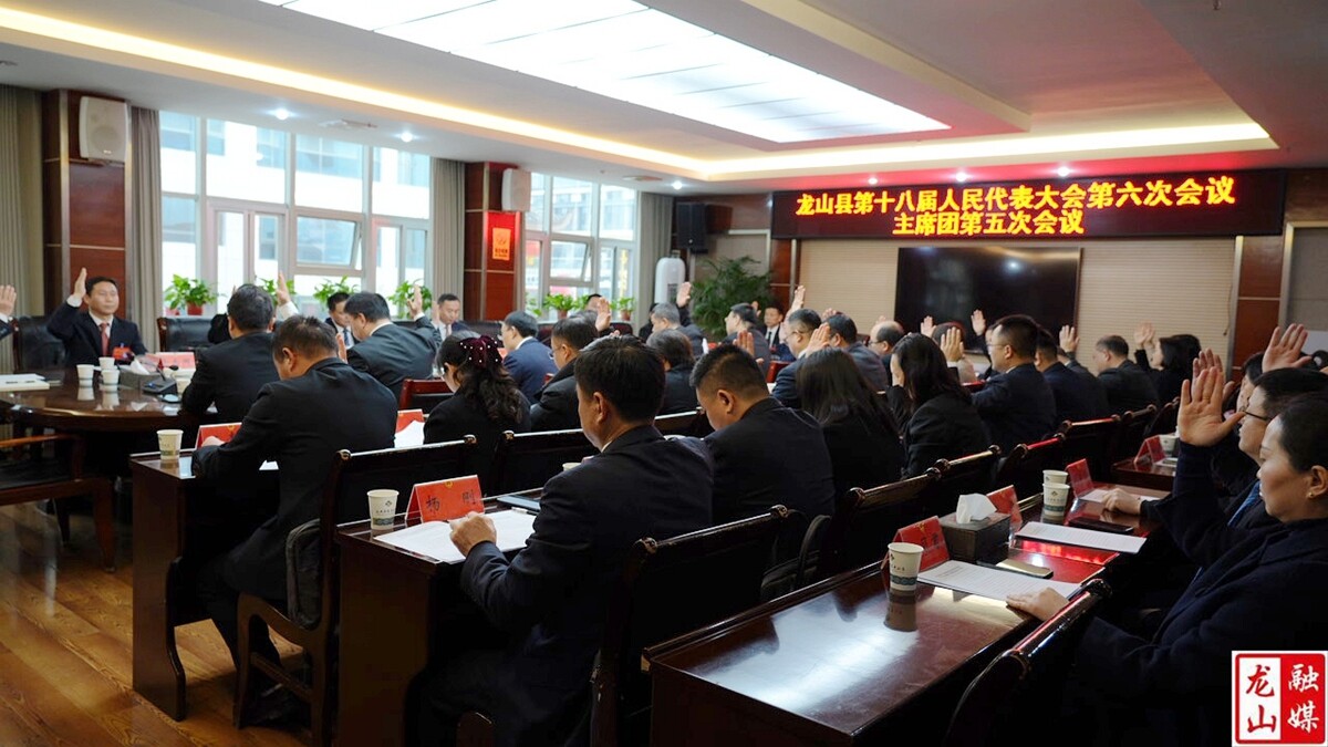 龙山县融媒体中心3月11日讯(记者 彭思倩 实习生 陈丽君) 3月11日,龙山县第十八届人民代表大会第六次会议举行主席团第五次会议。县人大常委会副主任叶明江主持会议。