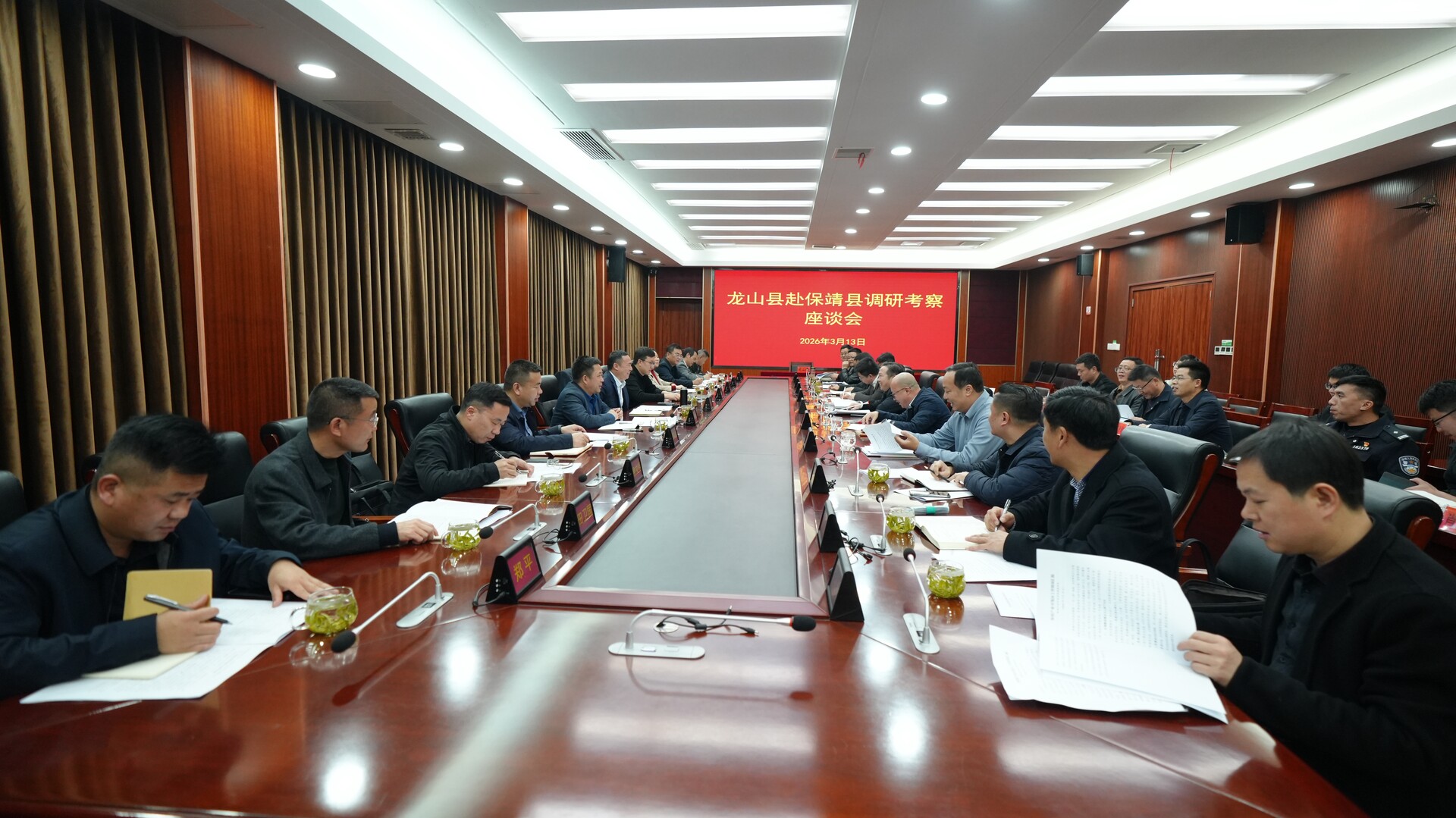 周建武对龙山考察团的到来表示欢迎。他强调,龙山与保靖山水相连、人文相亲、产业相近,具备跨县域协同发展的深厚基础和广阔前景。希望双方以此次考察为契机,进一步健全常态化交流合作机制,携手推动产业共兴、文旅共融、生态共治、流量共享、人文共美、资源共用,共同谱写区域协调发展新篇章。