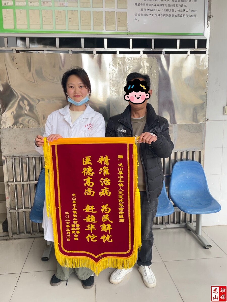 龙山县融媒体中心3月16日讯(通讯员 向美英)近日,农车镇卫生院门诊室内暖意浓浓,田某及家属专程来到医院,将一面印着“精准治病为民解忧 医德高尚赶超华佗”的鲜红锦旗,送到主治医生张甜甜及科室医护团队手中,以最质朴的方式,表达对医院精湛医术与优质服务的由衷感谢和高度认可。